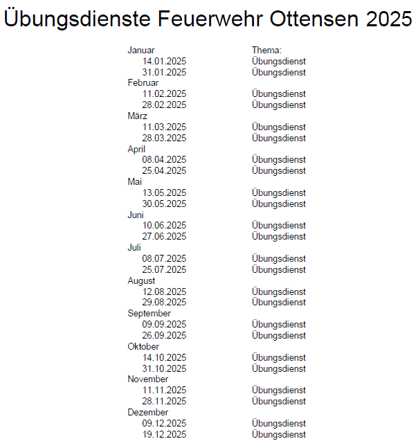 Dienstplan 2025