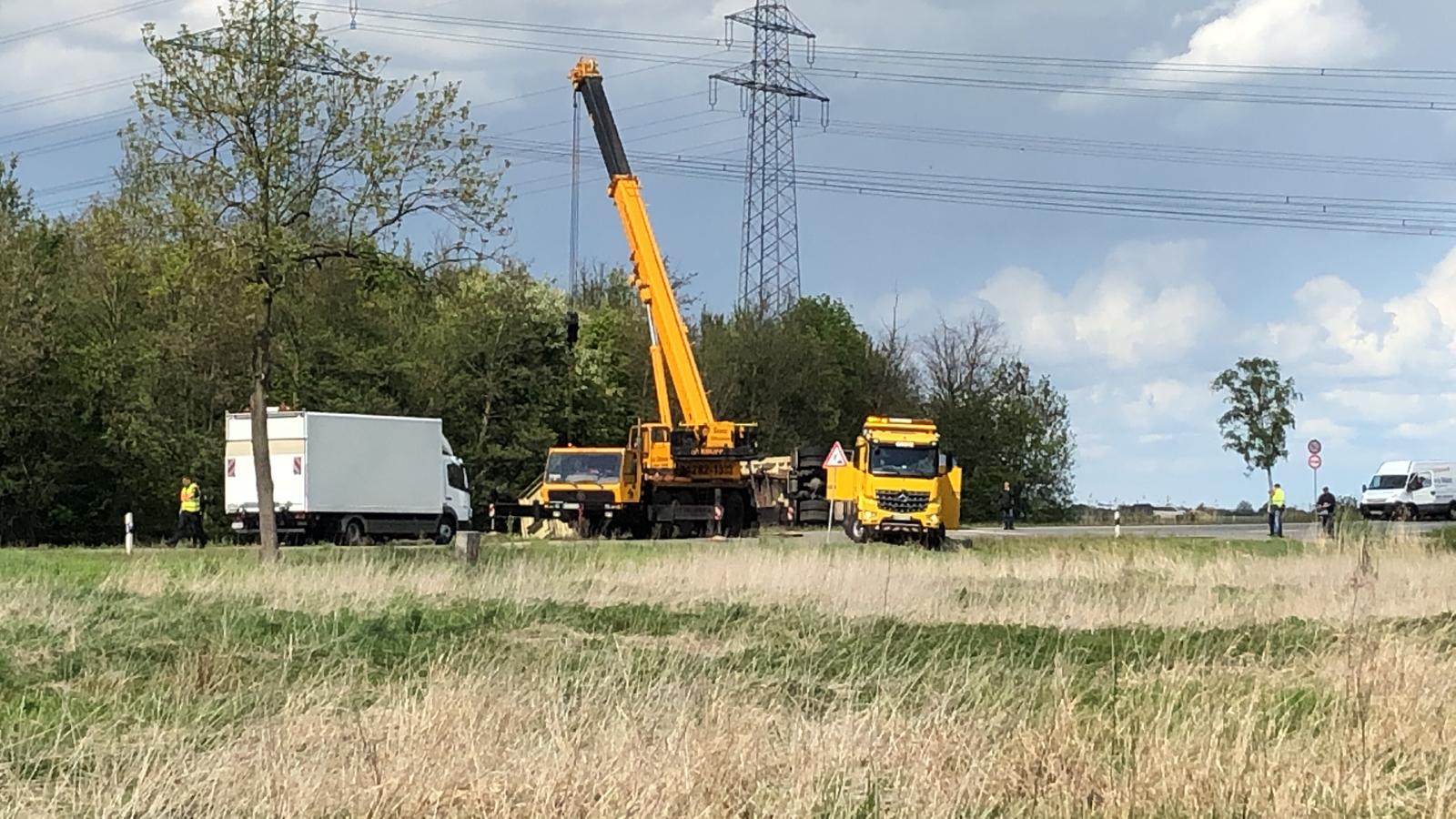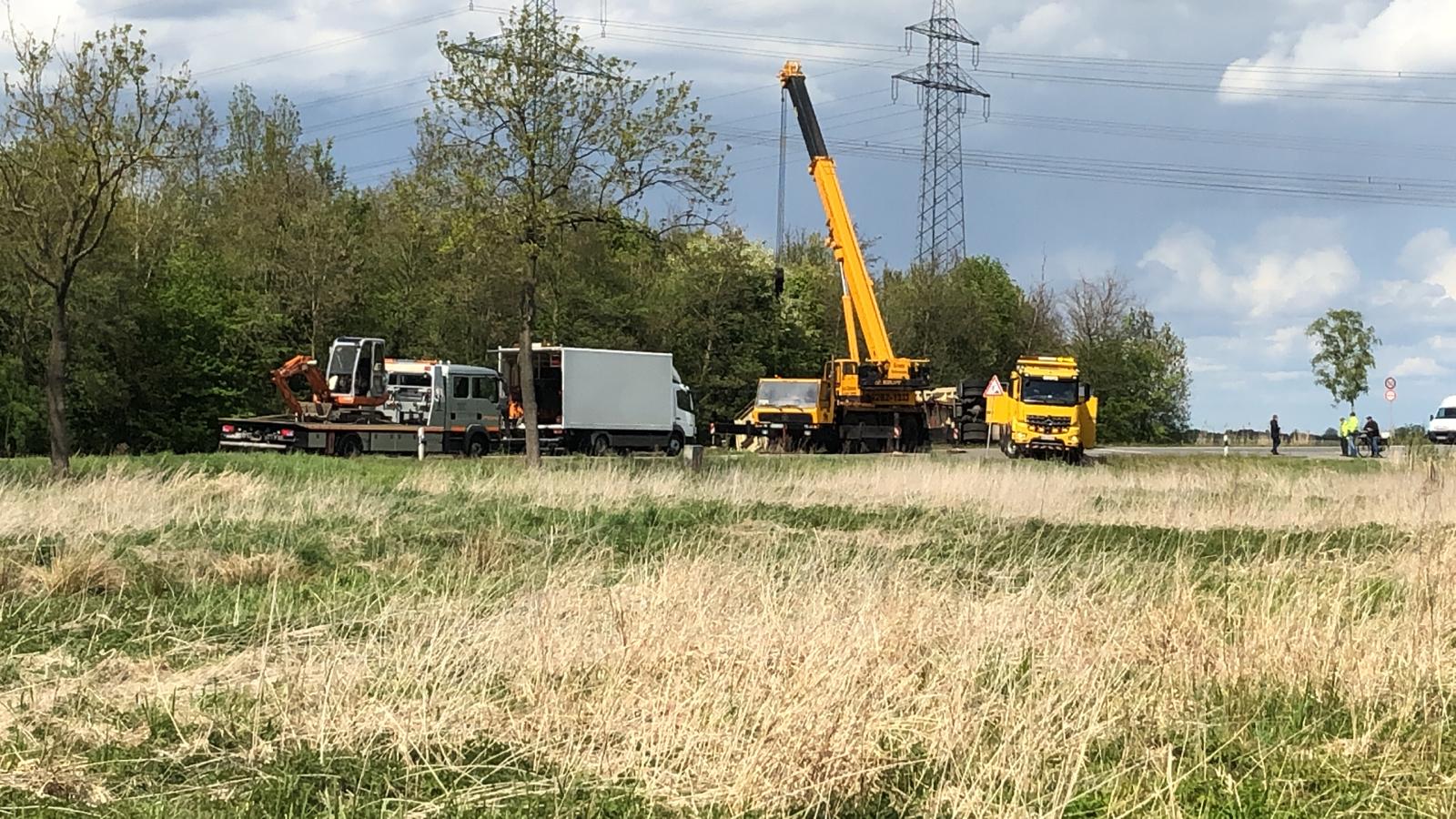 Noch bis in den Nachmittag hinein musste die Kreisstraße und die Autobahnabfahrt Jork für die Bergungsarbeiten zum Teil vollgesperrt werden.