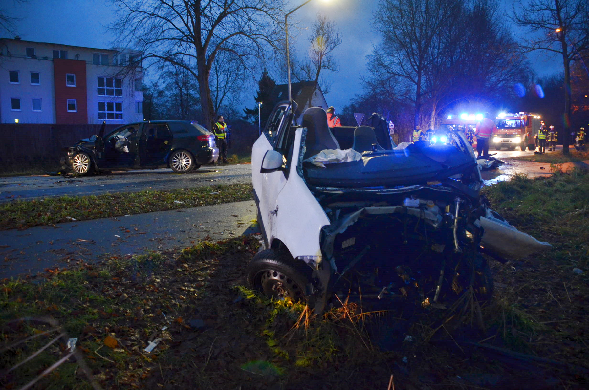 Am frühen Samstagmorgen kam es in der Harburger Straße zu einem schweren Verkehrsunfall, bei dem drei Autoinsassen zum Teil schwerste Verletzungen erlitten.