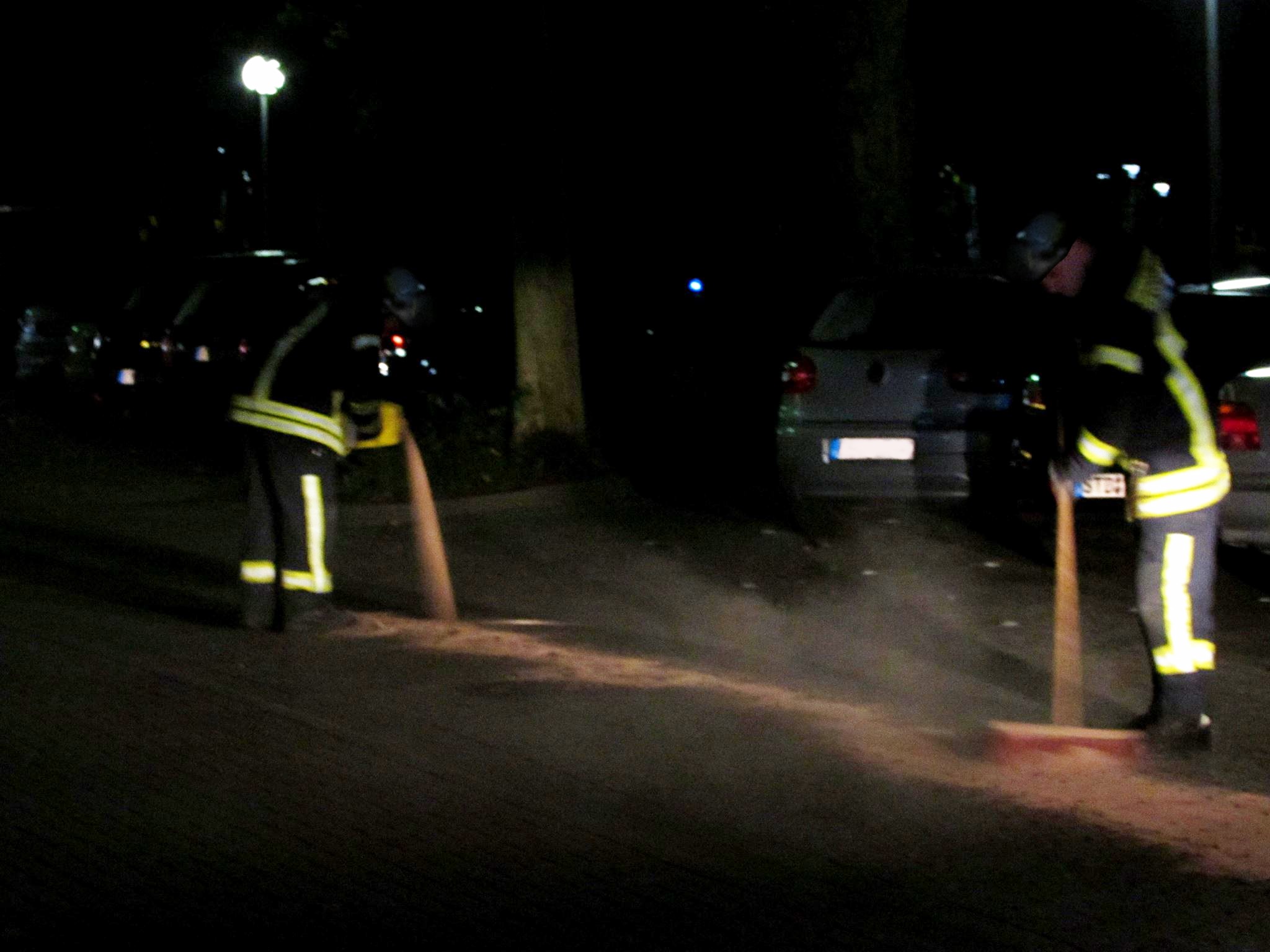 Eine 900 Meter lange Ölspur sorgte am späten Freitagabend für einen langwierigen Einsatz der Ortsfeuerwehr Buxtehude (Zug I). Das Motoröl war, vermutlich durch eine aufgerissene Ölwanne eines PKWs, ab dem Feuergang aus einem nicht mehr zu identifizierenden Fahrzeug ausgetreten und hatte sich auf der Fahrbahn der Viverstraße und Hansestraße bis zur Kreuzung Poststraße verteilt. Weitere Ölflecken waren in Richtung Buxtehude Süd zu finden. Von den Einsatzkräften wurde die Ölspur abgestreut und der Straßenverlauf grob gereinigt. Ein extra angefordertes Ölspurreinigungsfahrzeug einer Fachfirma aus Scheeßel wurde hinzugezogen, welches den verunreinigten Bereich noch einmal mit spezieller Technik gereinigt hat. Erst im Anschluss, weit nach Mitternacht, konnten die Einsatzkräfte der Feuerwehr wieder einrücken.