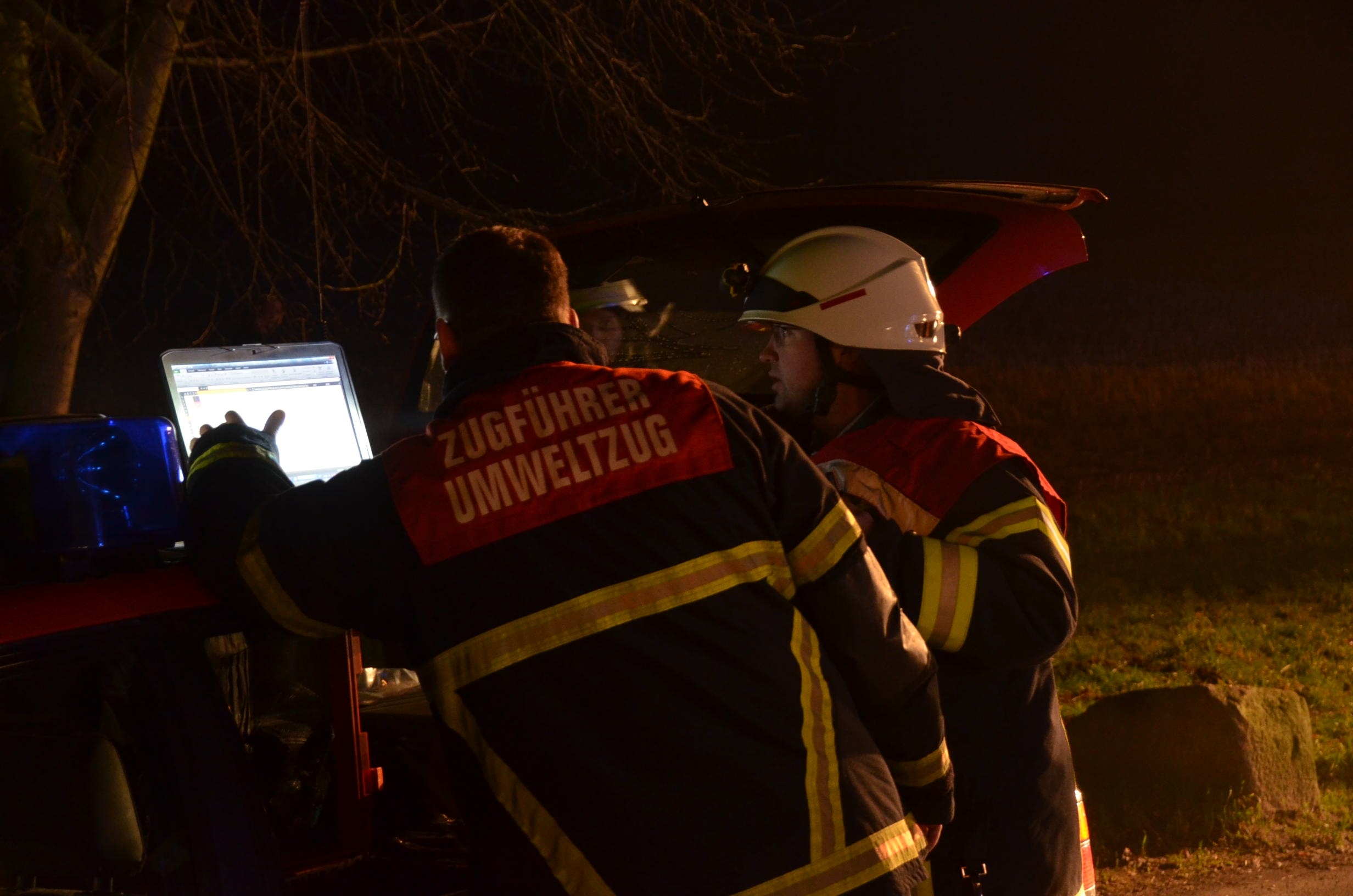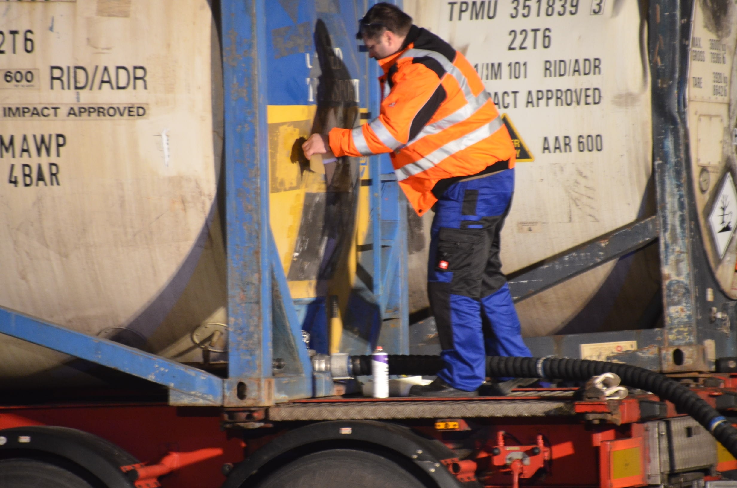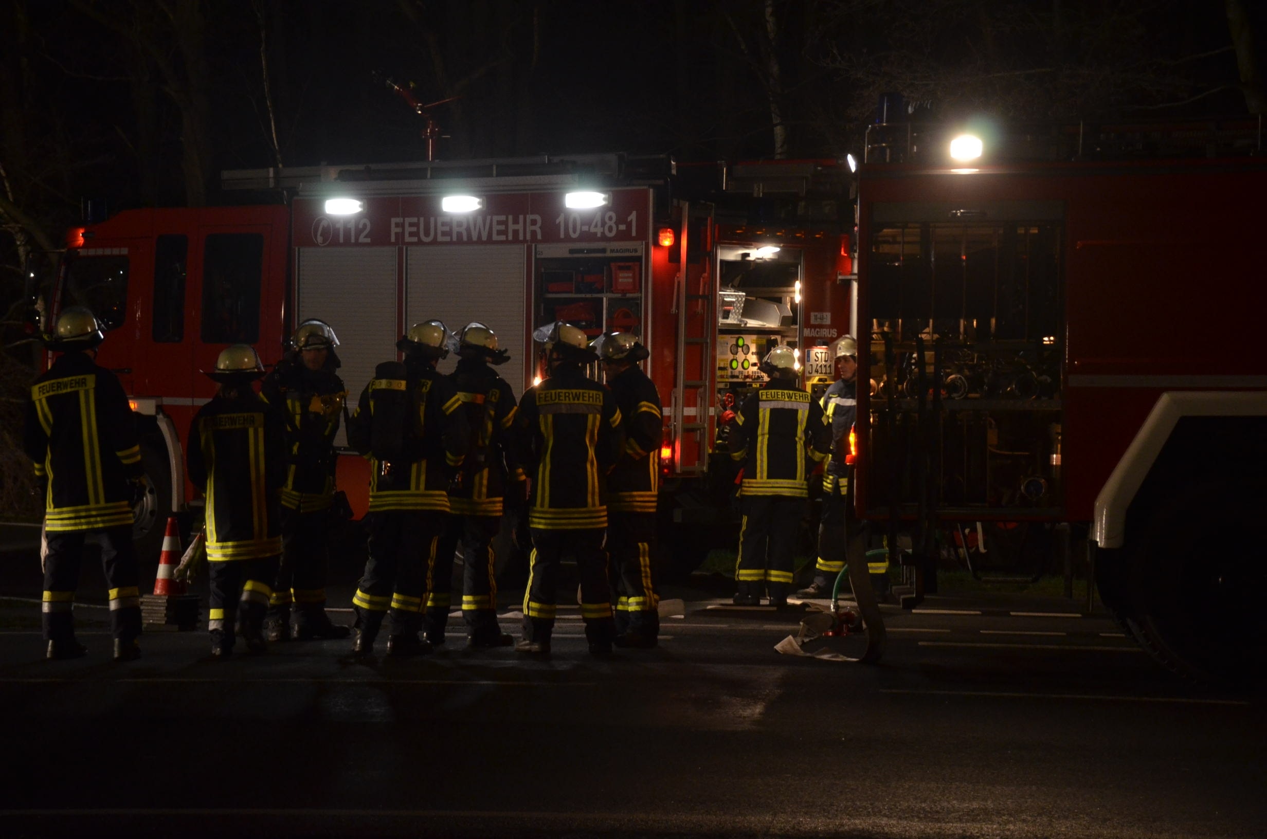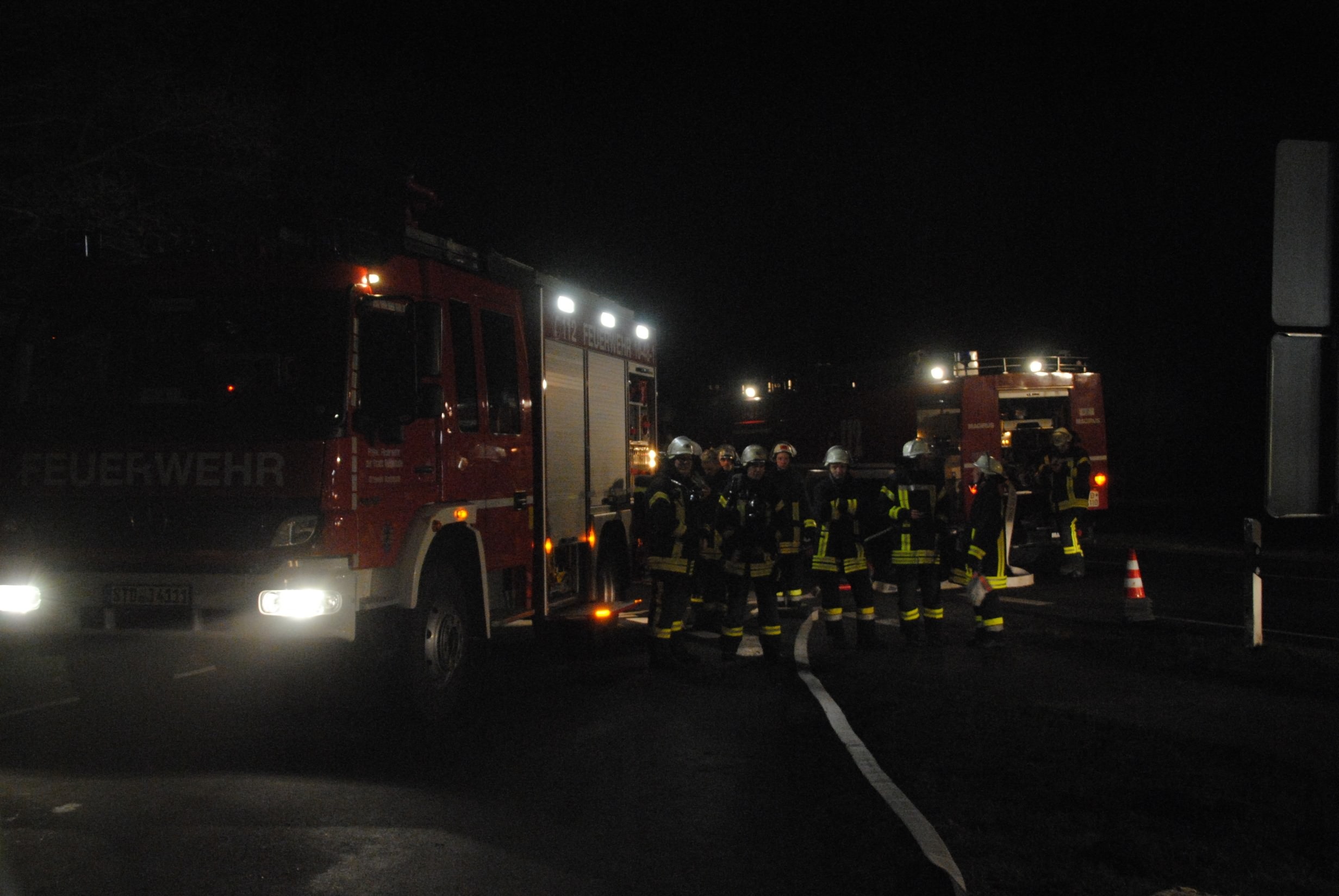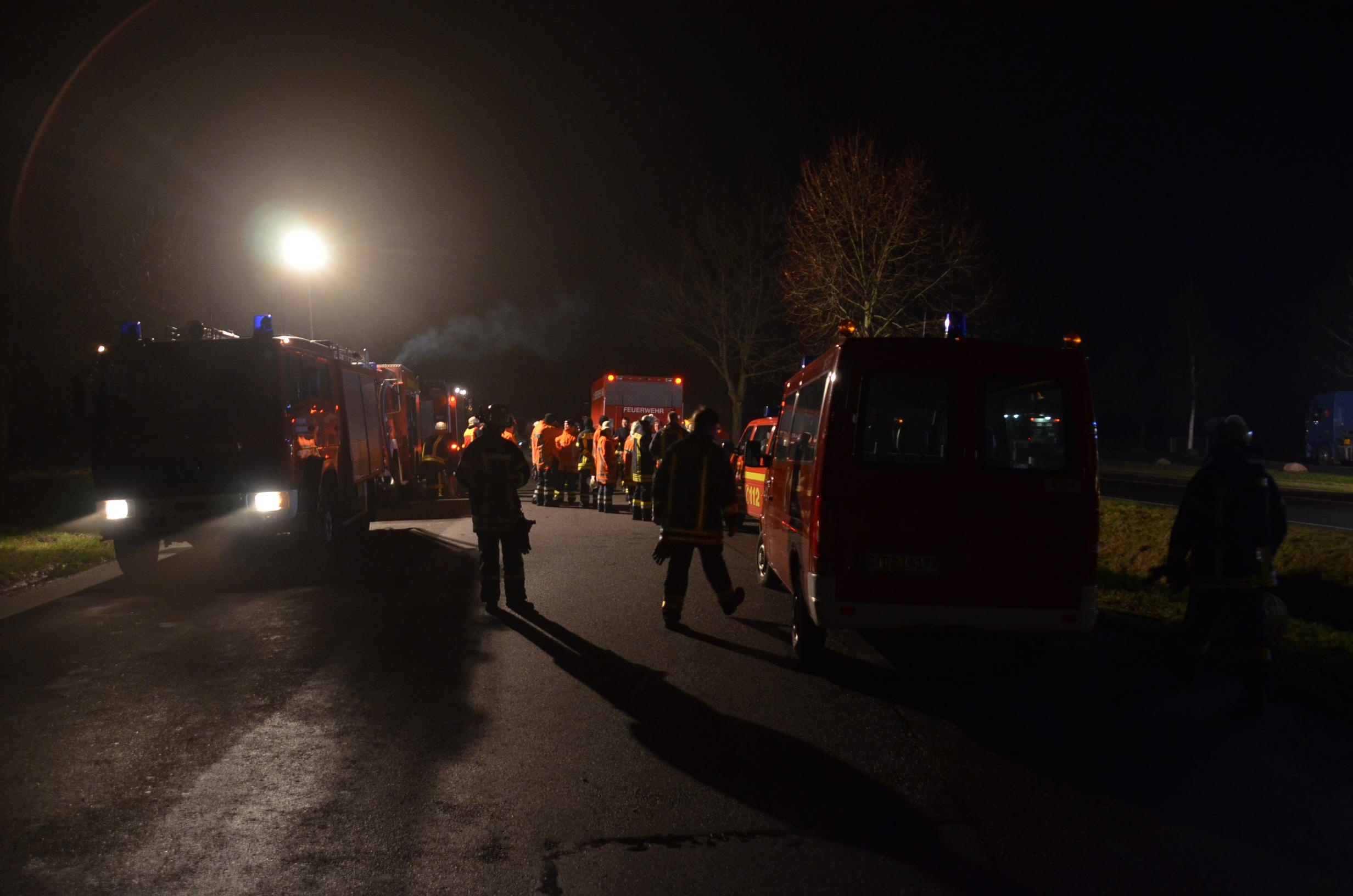 Nachdem der am Dienstagmittag in Hedendorf verunfallte Gefahrguttransporter zur nächstgelegenen Parkmöglichkeit auf einem Parkplatz an der B73 bei Nottensdorf verbracht worden war und ein Ersatzfahrzeug für die Ladung bereitgestellt werden konnte, begann am späten Nachmittag das Umpumpen des Gefahrstoffs Hexane in den Tankcontainer des Ersatzfahrzeuges. Hierzu wurden diverse Feuerwehren aus dem Umkreis alarmiert, darunter die Feuerwehren Horneburg, Nottensdorf, Hedendorf, Neukloster, Buxtehude (Zug I) und die Umweltgruppe Lk Stade Süd aus Neukloster, sowie Kreisbrandmeister, Umweltamt und -berater. Aufgabe der Feuerwehren war die Sicherstellung des Brandschutzes. Um im Bedarfsfall, Hexane ist hochentzündlich, schnell Eingreifen zu können, wurde vom Buxtehuder Hilfeleistungslöschfahrzeug und Großtanklöschfahrzeug ein zweiteiliger Löschangriff mit Wasser und Schaummittel aufgebaut, sowie ein Atemschutztrupp bereit gestellt. Die weiteren Fahrzeuge gingen auf dem gegenüberliegenden Parkplatz in Bereitstellung. Aufgabe der Umweltgruppe war ein mögliches Auffangen bei unerwartetem Austritt des Mediums und die Erdung der beiden Container gegen statische Aufladung und damit möglichem Funkenüberschlag. Die Feuerwehr Horneburg sorgte für die Ausleuchtung der Einsatzstelle.