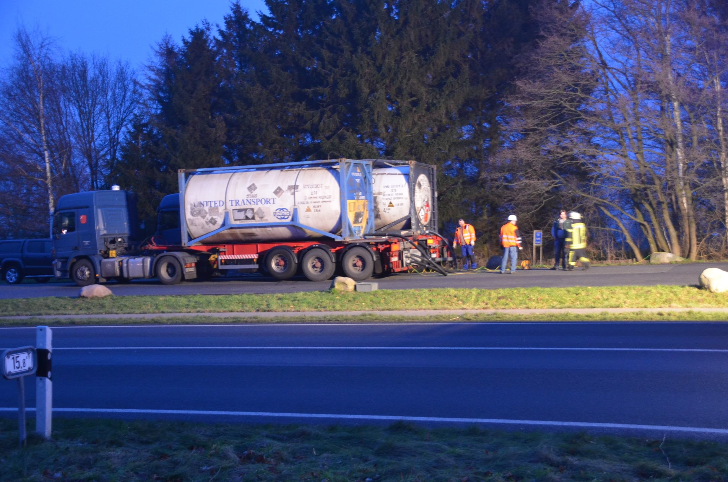 Außer einer zwischenzeitlich kaputt gegangenen Umfüllpumpe, für die aus Stade mit Blaulicht Ersatz beschafft werden musste, ging soweit alles gut, so dass die gut fünfstündige Vollsperrung der Bundesstraße gegen 22:00 Uhr wieder aufgehoben werden konnte. Zum Schluss wurde der geleerte Tank durch die Buxtehuder Kräfte mit Schaum geflutet um ein mögliches Entzünden des Restmediums verhindern zu können.