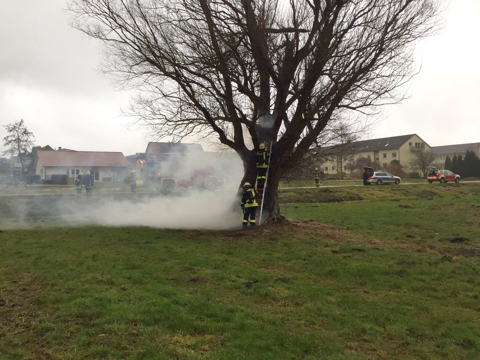 Alter Baum vermutlich durch Feuerwerkskörper in Brand gesetzt
