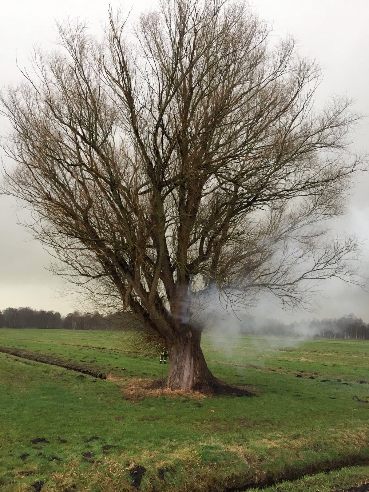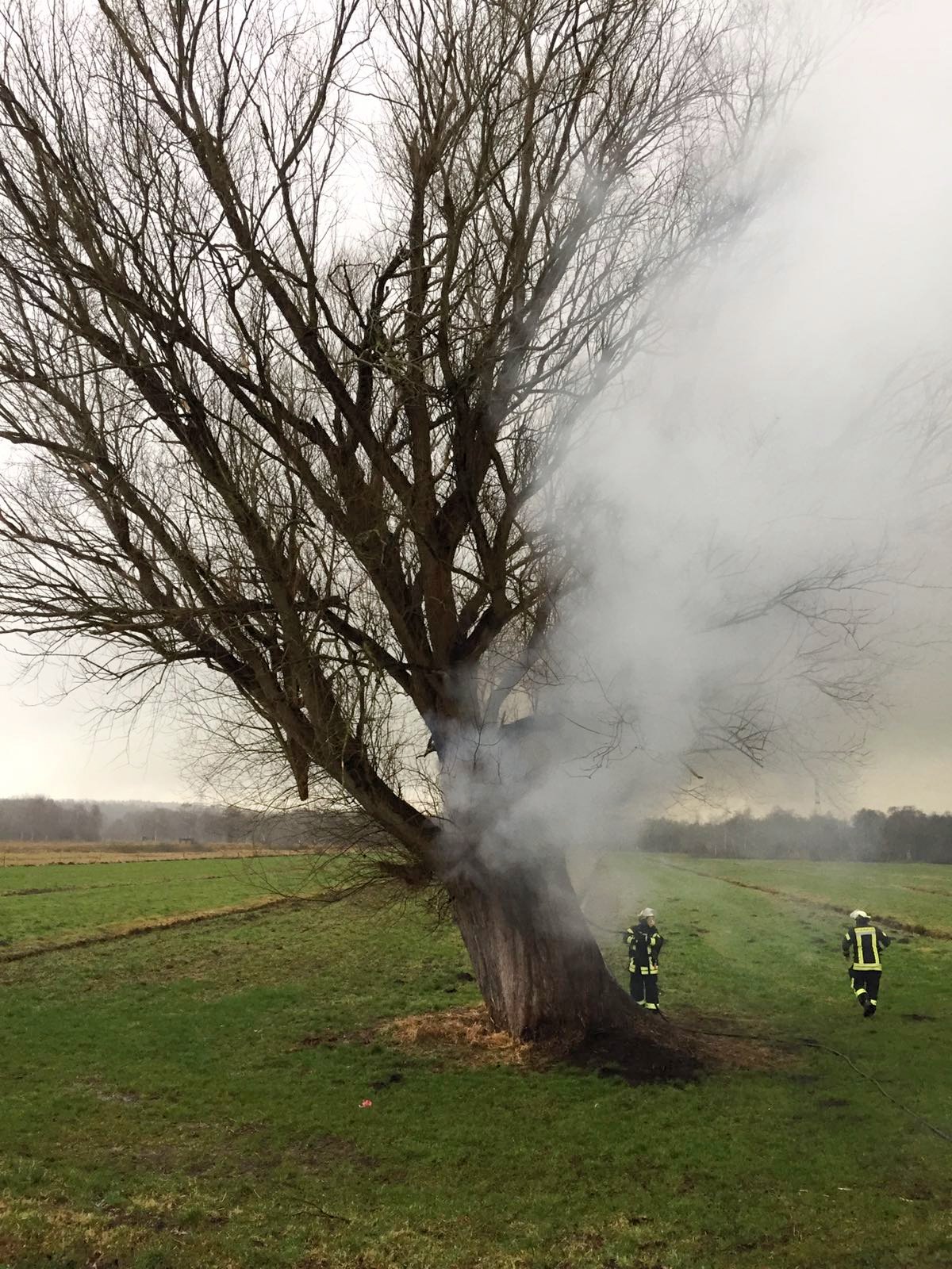 Etwa zwei Stunden später standen die schwer zu erreichenden Glutnester erneut in Flammen, so dass die Einsatzkräfte wieder eingreifen mussten. Durch den hohlen Stamm kam es zu einem Kamineffekt, wodurch das Feuer weiter angeheizt wurde.