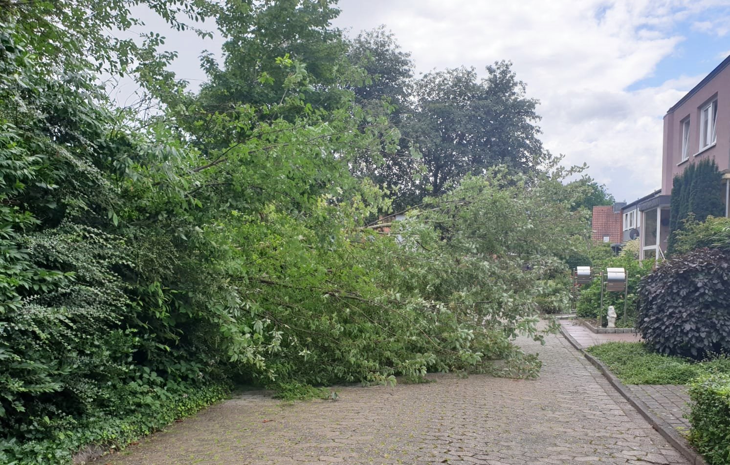 Kein Durchkommen am Samstagmittag in der Bertramstraße. Ein großer Ast war von einem Baum abgebrochen und versperrte die komplette Fahrbahn.