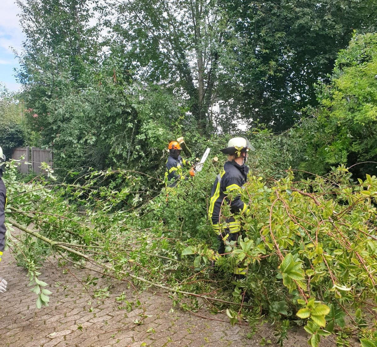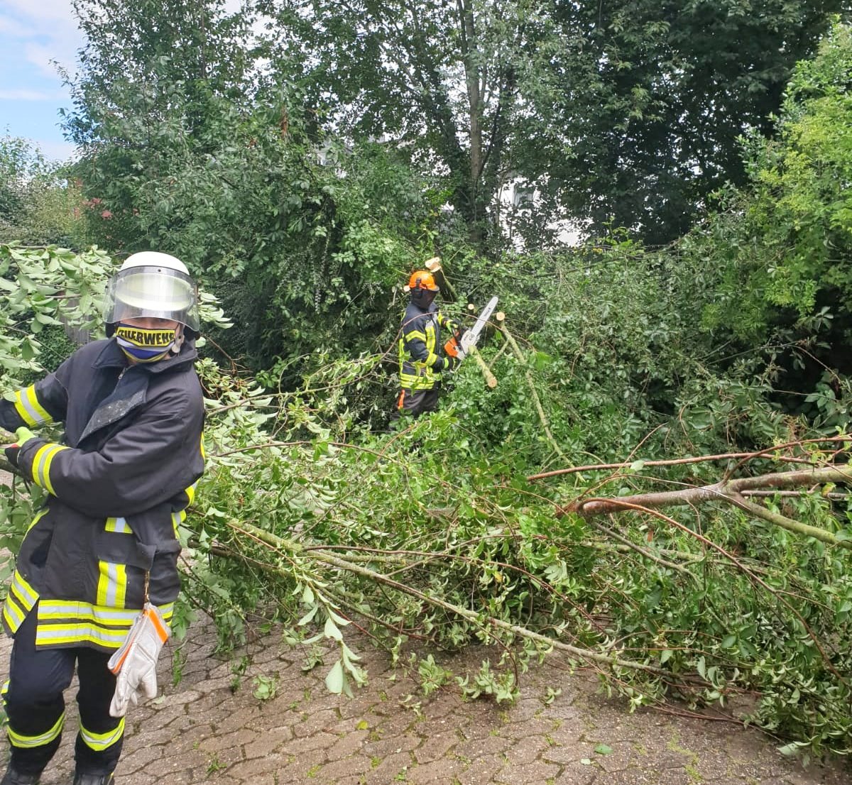 Die Einsatzkräfte vom alarmierten Zug I der Ortsfeuerwehr Buxtehude rückten mit dem Hilfeleistungslöschfahrzeug aus und mussten die Motorsäge einsetzen.