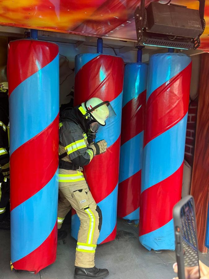 “Wenn das Funhouse ‘Feueralarm’ auf den Pfingstmarkt kommt, ist die echte Feuerwehr nicht weit.” So oder so ähnlich könnte man eine kleine Aktion der Atemschutzgeräteträger der Ortsfeuerwehr Neukloster betiteln, die am Pfingstmontag mitten im Trubel des Pfingstmarktes stattfand. Insgesamt 17 voll ausgerüstete Atemschutzgeräteträger ließen es sich nicht nehmen, das erst ein Jahr alte Funhouse direkt vor dem eigenen Feuerwehrhaus auf Herz und Nieren zu testen. Ein großer Spaß für alle Beteiligten und Zuschauer.