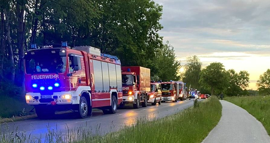 Wenig später wurde der Alarm auf die gesamte Stadtfeuerwehr ausgedehnt, so dass alle Buxtehuder Ortsfeuerwehren ausrückten. Auch die Einsatzdrohnen der Feuerwehr Harsefeld und der DLRG Horneburg sowie ein Hubschrauber mit Wärmebildkamera wurden angefordert. Im Einsatz waren auch die Polizei, das Notarztfahrzeug und Kradmelder vom DRK.