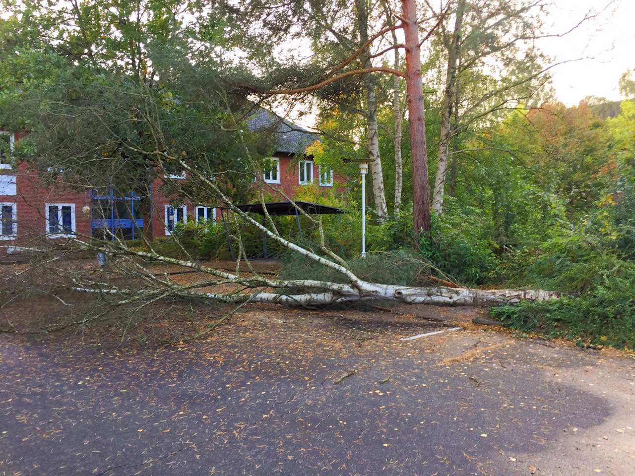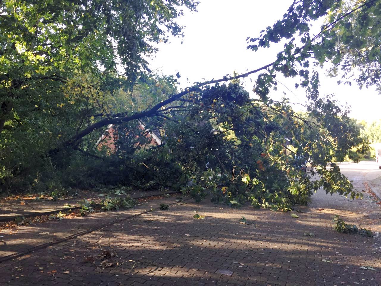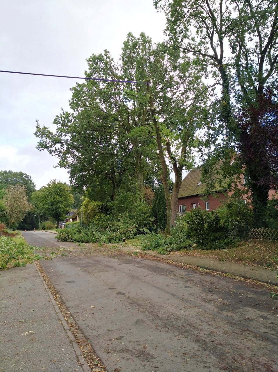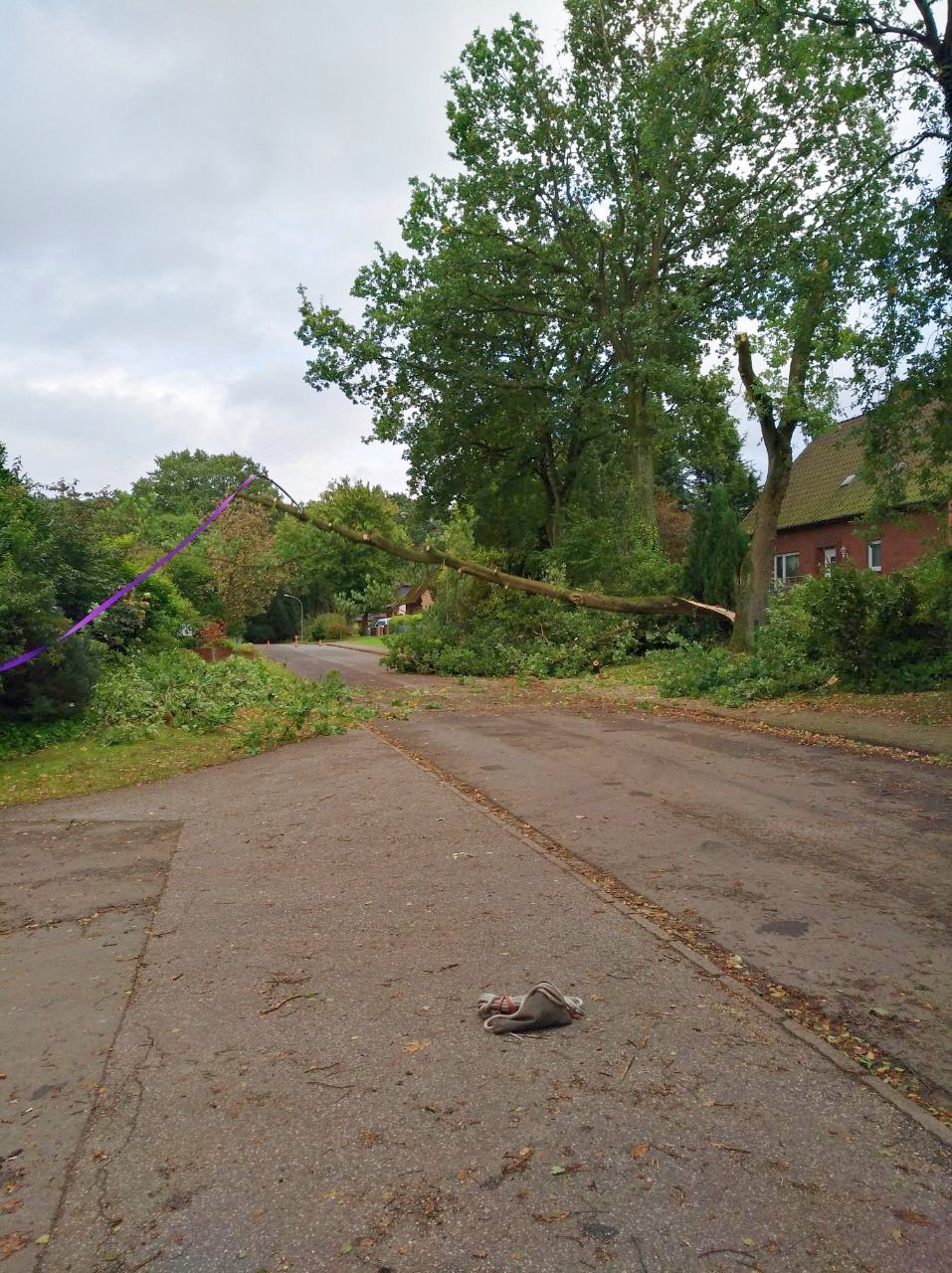 Auch im Bollweg hatte es eine große Birke erwischt, die quer über der Fahrbahn lag und durch die Einsatzkräfte entfernt werden musste.