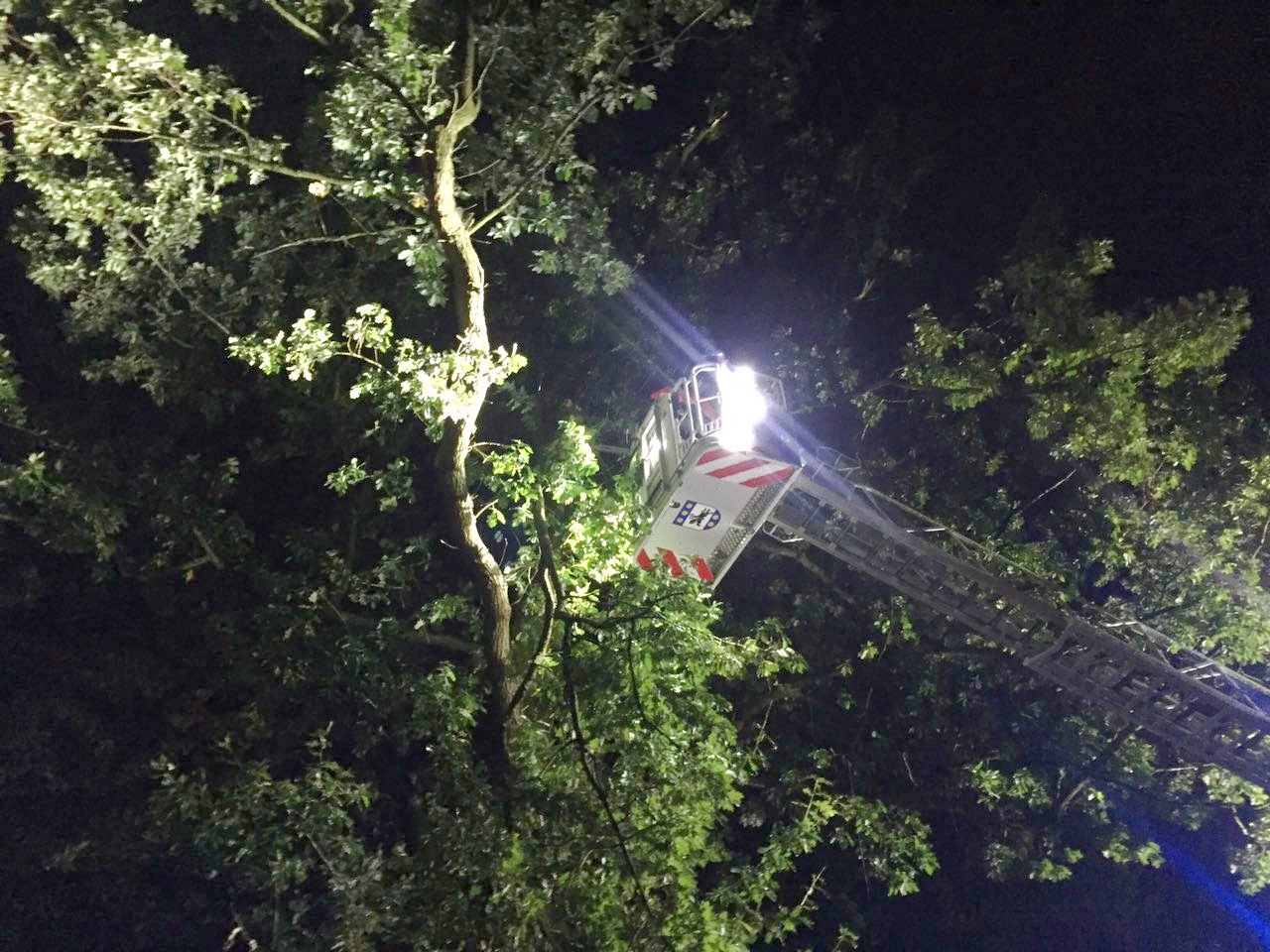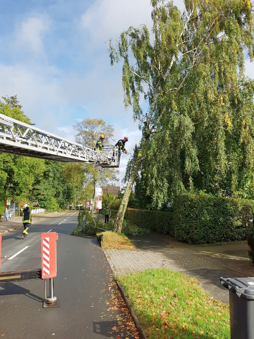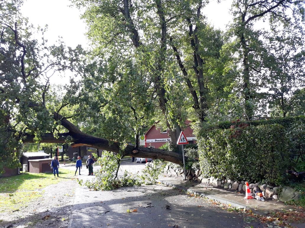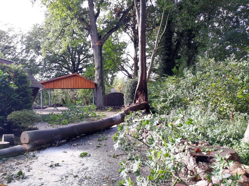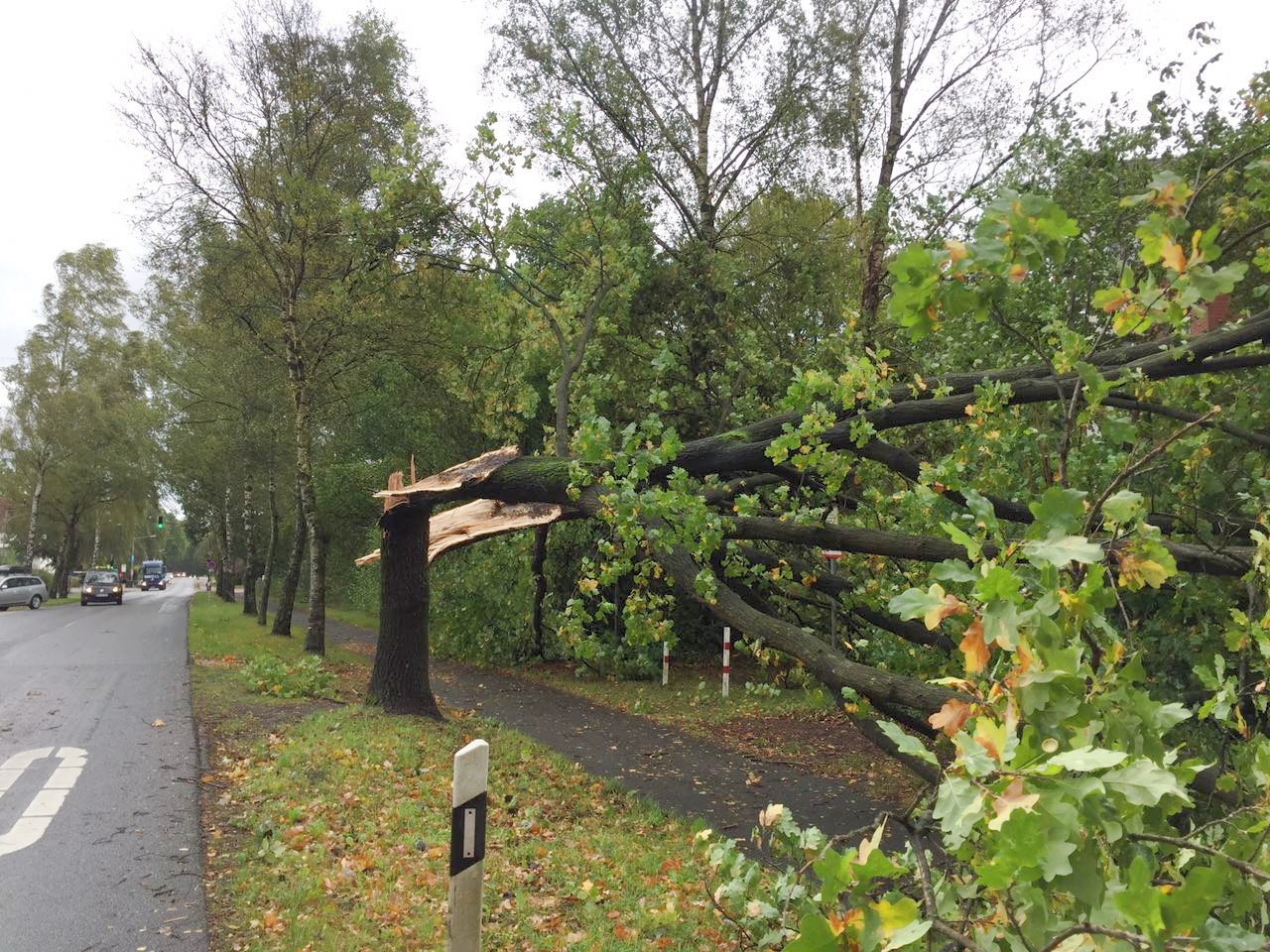 Auch im Bollweg hatte es eine große Birke erwischt, die quer über der Fahrbahn lag und durch die Einsatzkräfte entfernt werden musste.