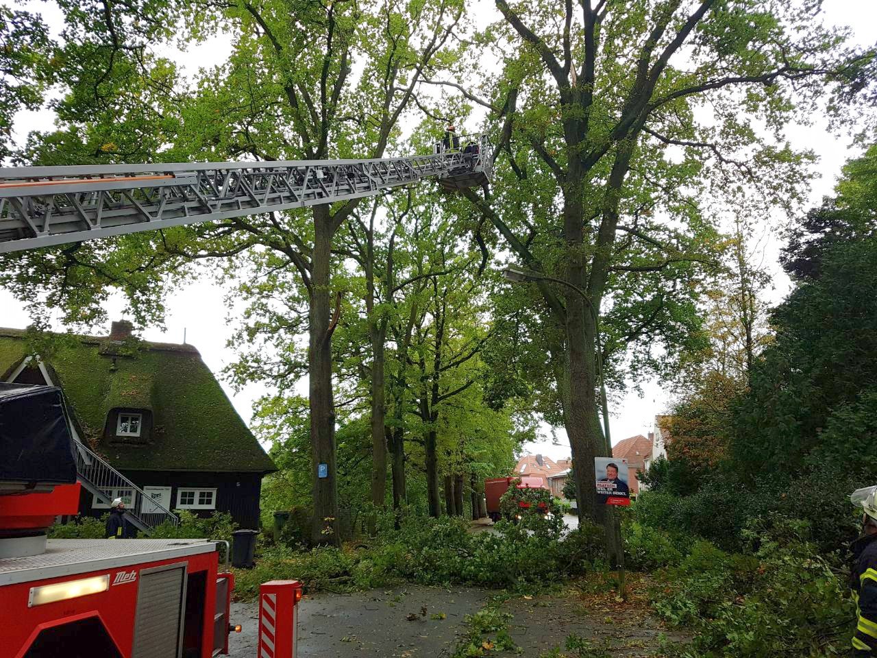 Diverse Bäume wurden auch im Bereich Neukloster und an der B73 umgeknickt, wo die Wehren aus Hedendorf und Neukloster zum Einsatz kamen.