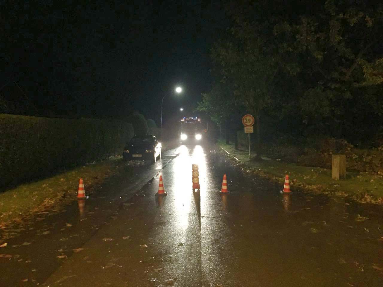 Im Wald-, bzw. Tunnelweg konnte ein umgestürzter Baum nicht entfernt werden, da die Gefahr durch weitere Bäume viel zu gefährlich war. Die Einsatzkräfte aus Immenbeck sperrten hier die Straße komplett ab.