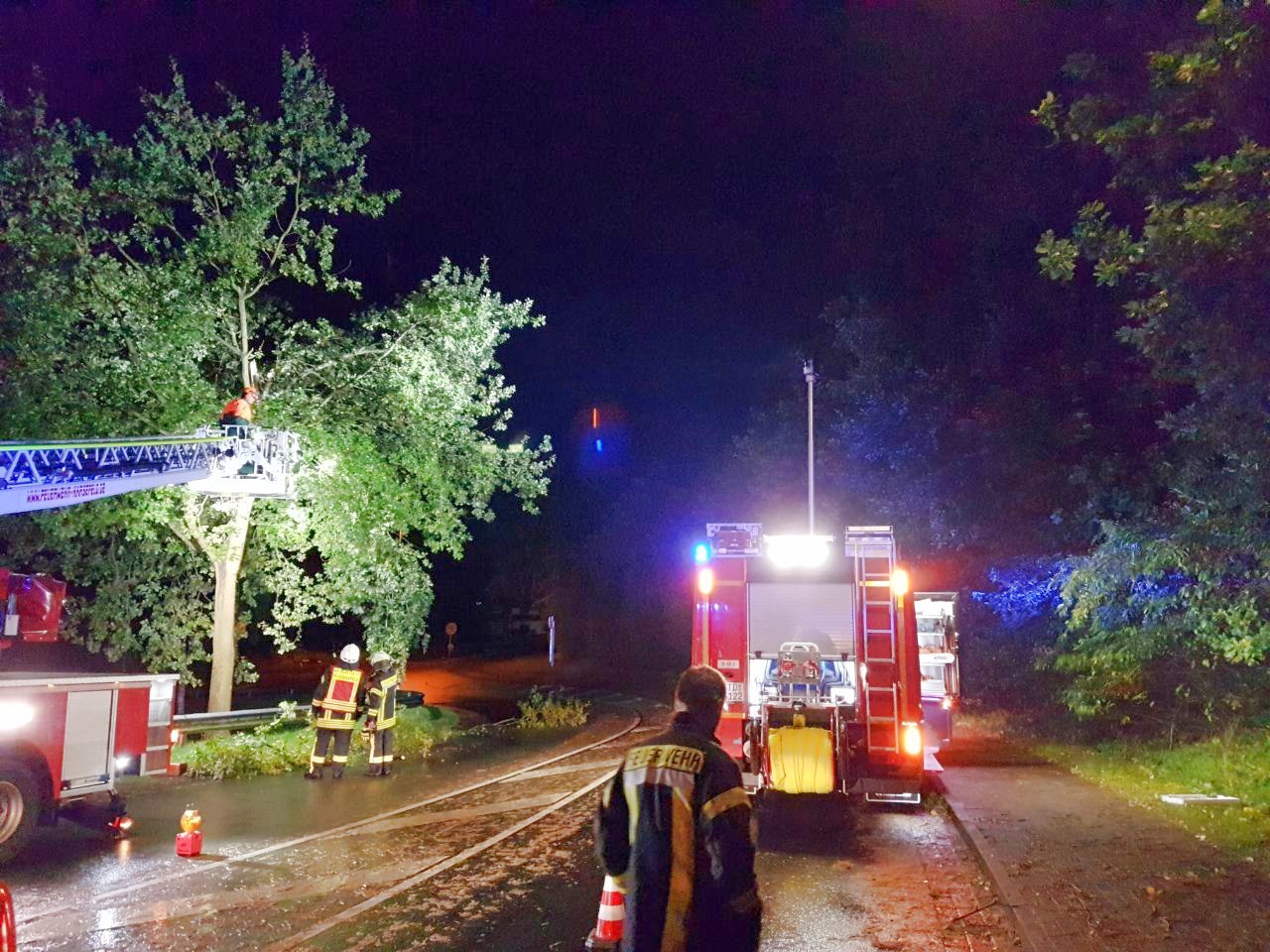 In der Bertramstraße wurden zwei PKW von einem größeren Baum beschädigt. In Dammhausen war durch die Böen ein Ampelmast umgeknickt, die Kräfte aus Dammhausen übernahmen hier.