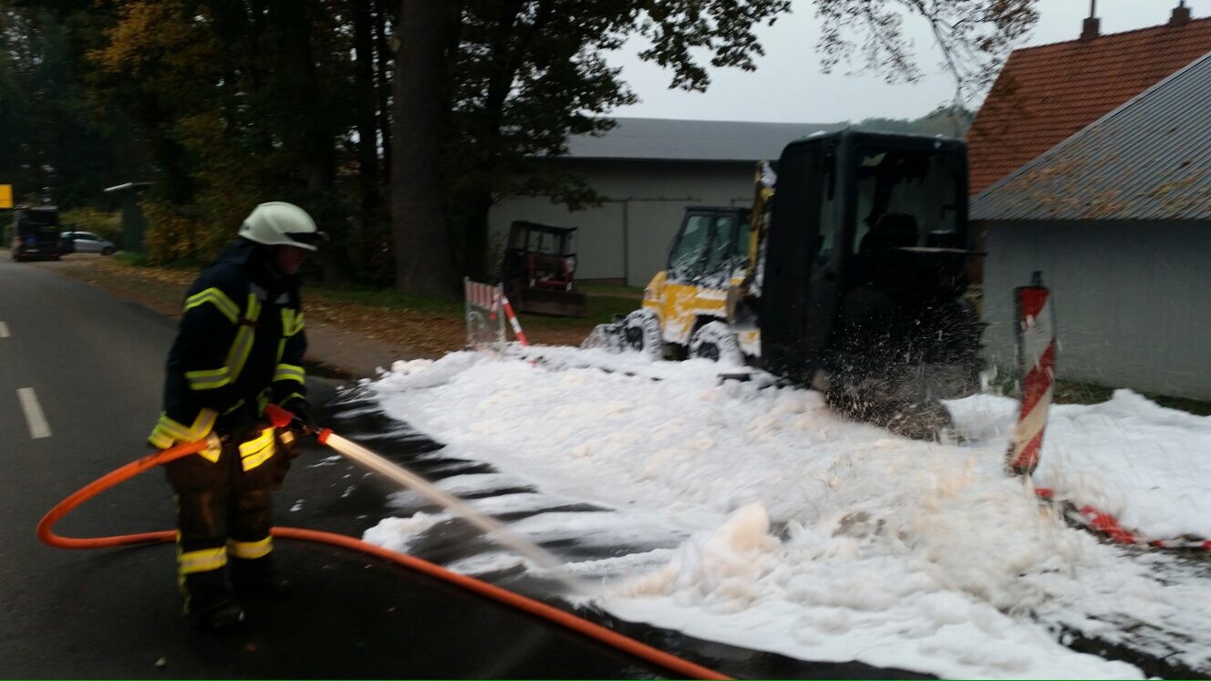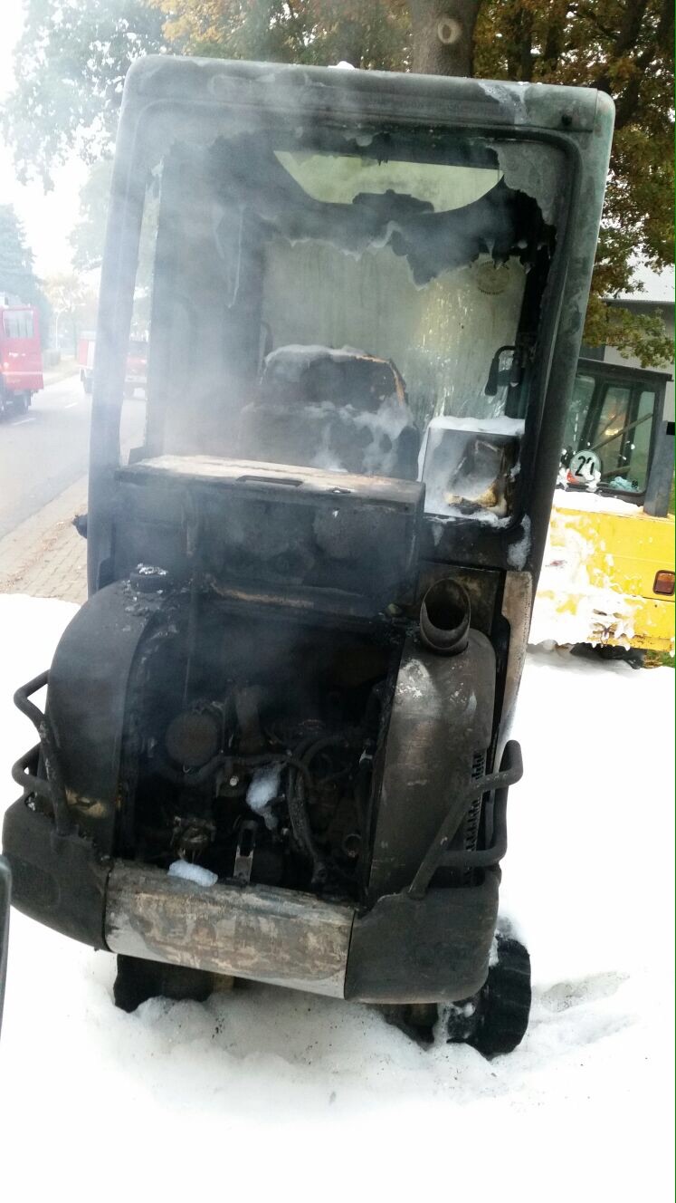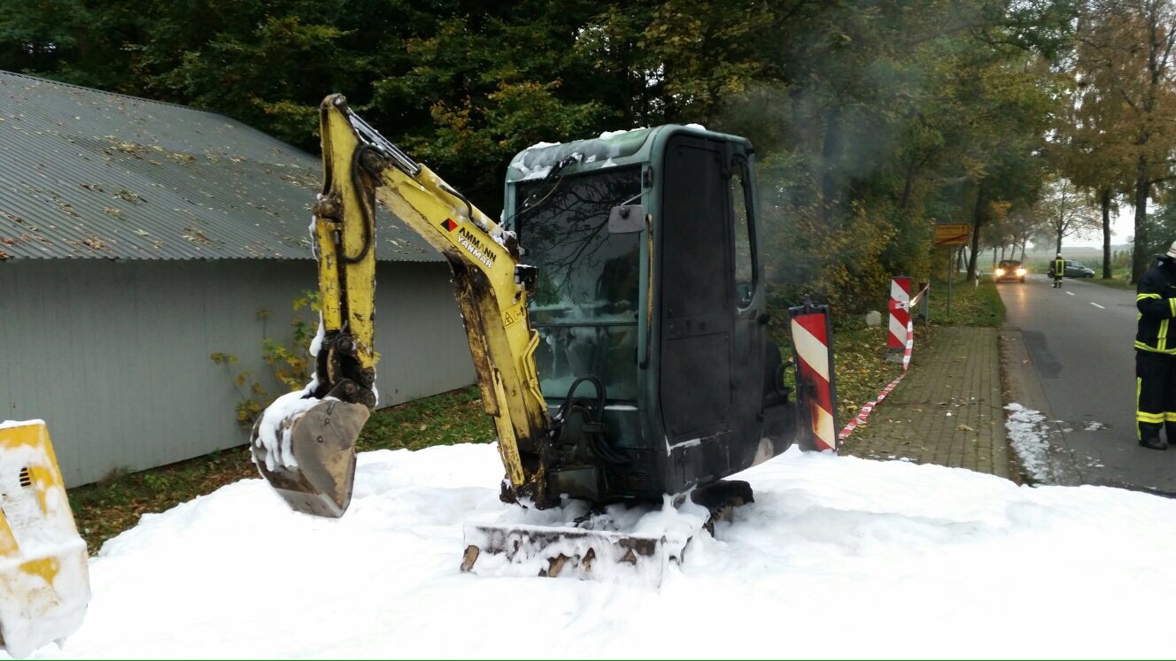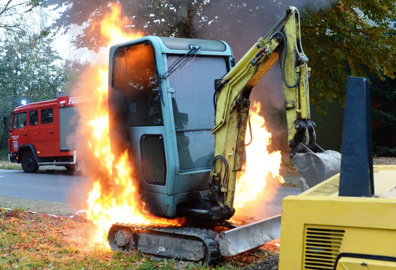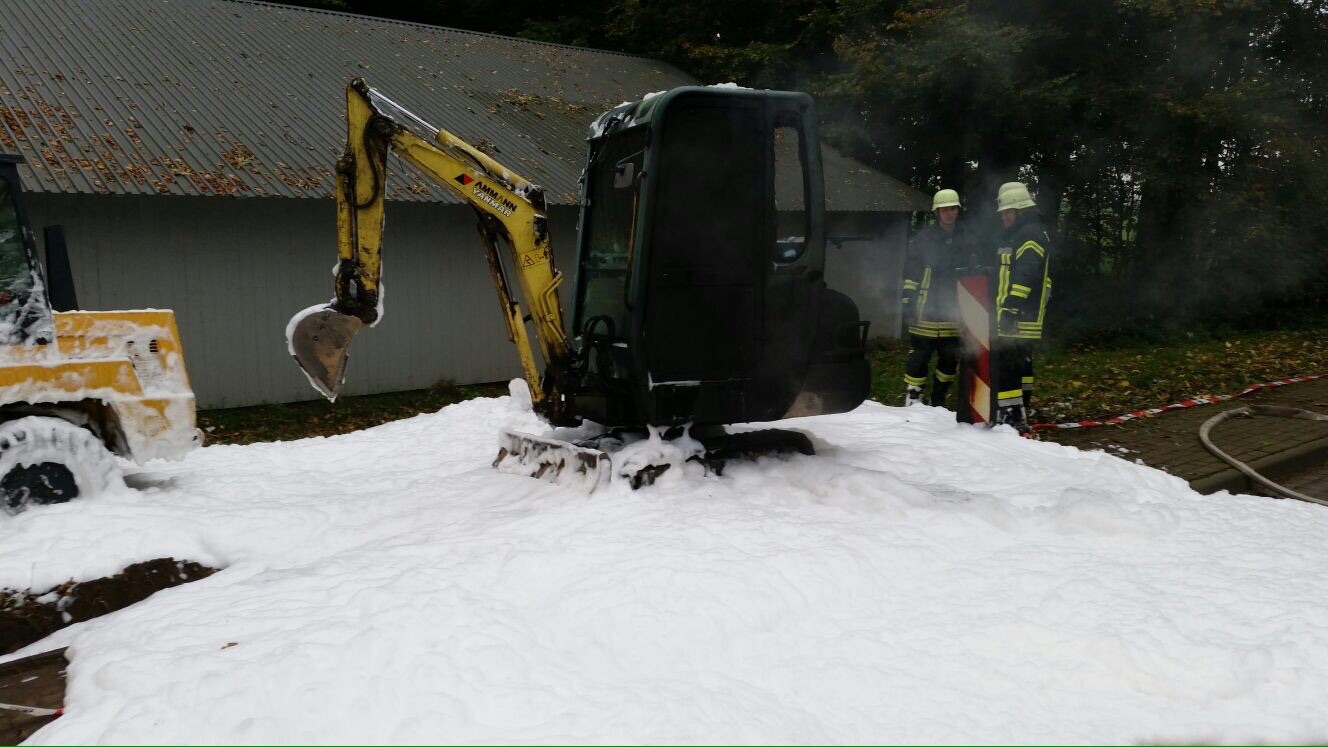 Beim Eintreffen der ersten Einsatzkräfte stand der Bagger bereits in Vollbrand. Unter Zuhilfenahme von Schaummittel konnte das Feuer relativ schnell abgelöscht und nach kurzer Zeit "Feuer aus" gegeben werden.