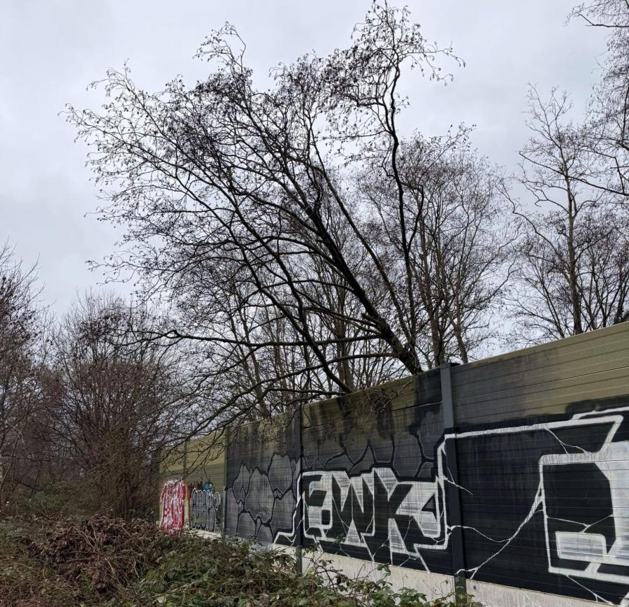 Baum auf Schallschutzmauer