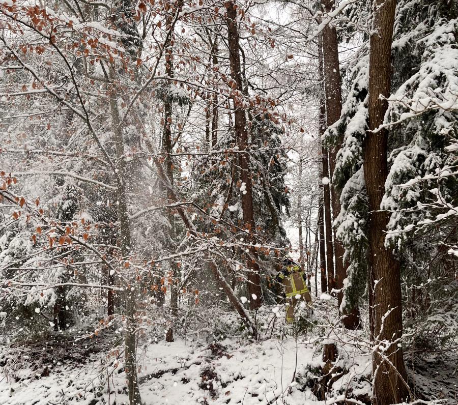 Vor Ort konnten die Feuerwehrkräfte in langsamer Fahrt nichts finden. Erst eine Erkundung zu Fuß brachte dann ein Ergebnis. Ein abgebrochener Ast hatte sich in einer Baumkrone verfangen.