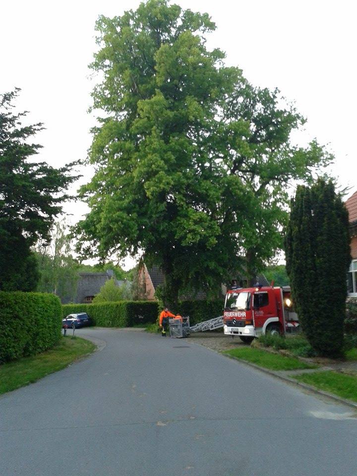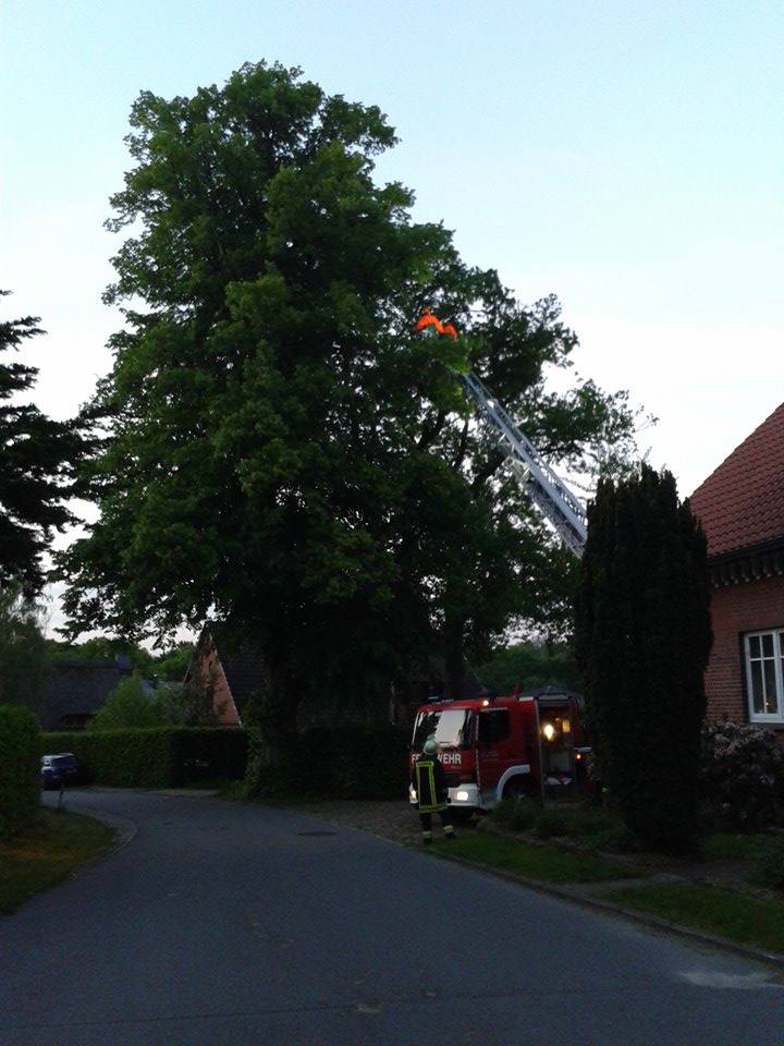 Zu einer technischen Hilfeleistung wurden am Dienstagabend die Ortsfeuerwehr Ottensen, sowie die Drehleiter vom Zug I der Ortsfeuerwehr Buxtehude alarmiert. In der Straße "Estewiesen" drohte ein Teil einer ca. 20m hohen Eiche auf ein Wohnhaus zu stürzen.