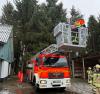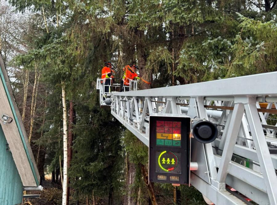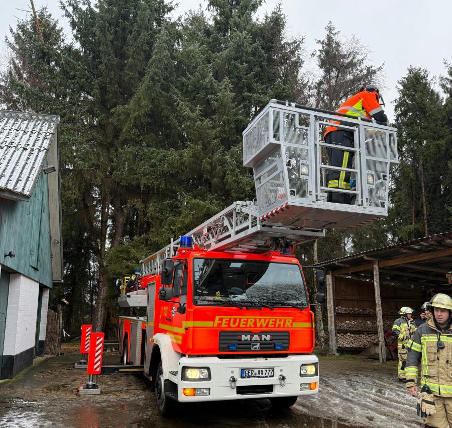 Vor Ort erkundeten die Einsatzkräfte die Lage und stellten fest, dass der Einsatz einer Drehleiter notwendig war.