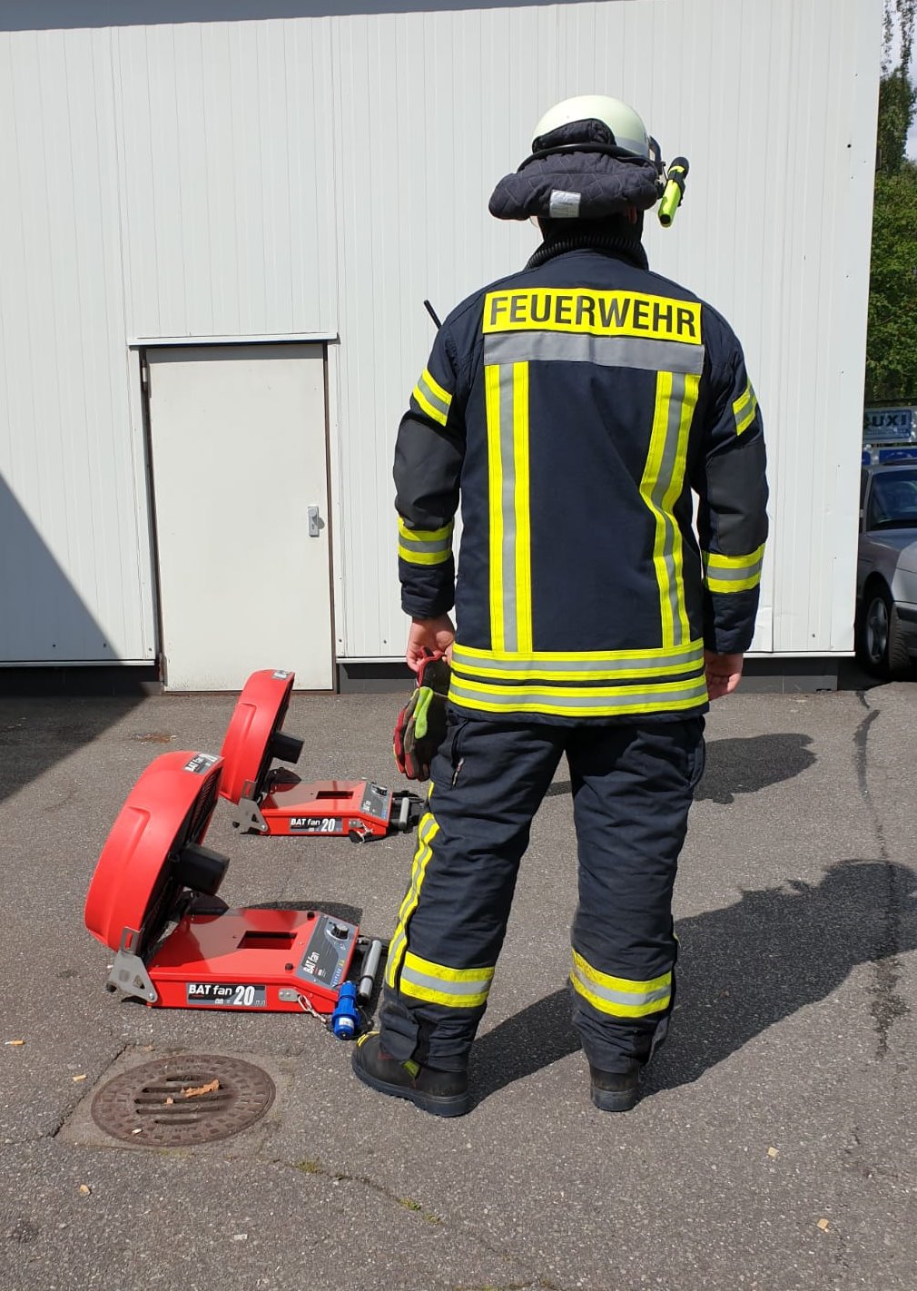 Belüftungsarbeiten nach Fahrzeugbrand