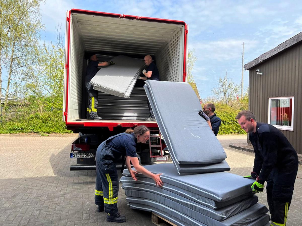 Insgesamt 200 Matratzen und 100 Betten mussten für weitere zu erwartende Kriegsflüchtlinge aus einem Lager in Stade abgeholt und nach Buxtehude gebracht werden.