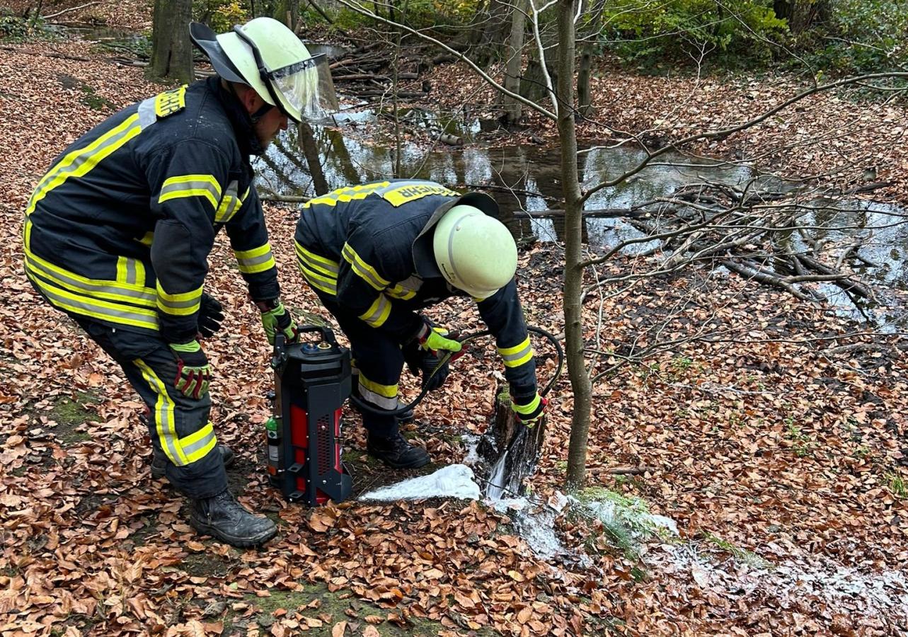 Einen brennenden Baumstumpf meldete eine Anruferin am Freitagnachmittag bei der Feuerwehr- und Rettungsleitstelle. Da das Feuer weitestgehend erloschen war, wurden die Einsatzkräfte der Ortsfeuerwehren Neukloster und Hedendorf mit der Info Brandnachschau alarmiert. Etwas herausfordernd gestaltete sich das Auffinden der Einsatzstelle im Neukloster Forst.