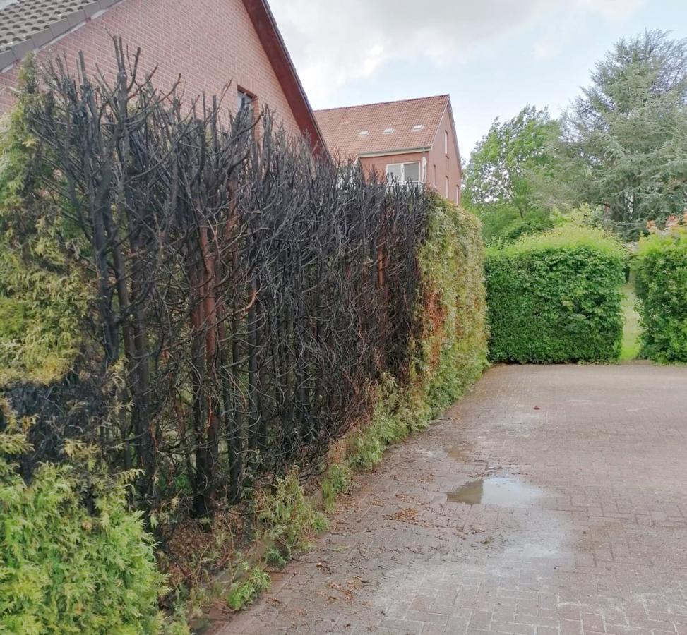 Etwa vier Meter einer Buschhecke standen am Samstagnachmittag in der Lüneburger Straße in Flammen. Noch vor dem Eintreffen der alarmierten Einsatzkräfte vom Zug I der Ortsfeuerwehr Buxtehude hatten Anwohner die Flammen mit Eimer und Gießkanne ablöschen können und verhinderten Schlimmeres. Die Feuerwehrkräfte löschten mit dem Schnellangriffsschlauch letzte Glutnester sowie den nicht betroffenen Teil der Hecke.