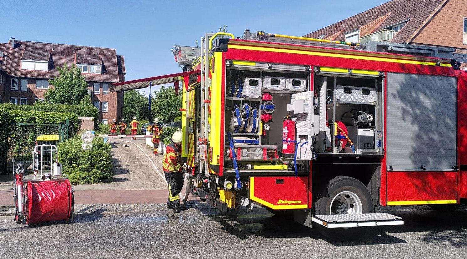 Bereits am Freitagmorgen wurden dann die Einsatzkräfte aus Neu Wulmstorf zu einem Heckenbrand in die dortige Bahnhofstraße alarmiert. Da das Feuer auf ein Wohnhaus überzugreifen drohte, piepten auch umgehend die Melder für die Buxtehuder Drehleiter.