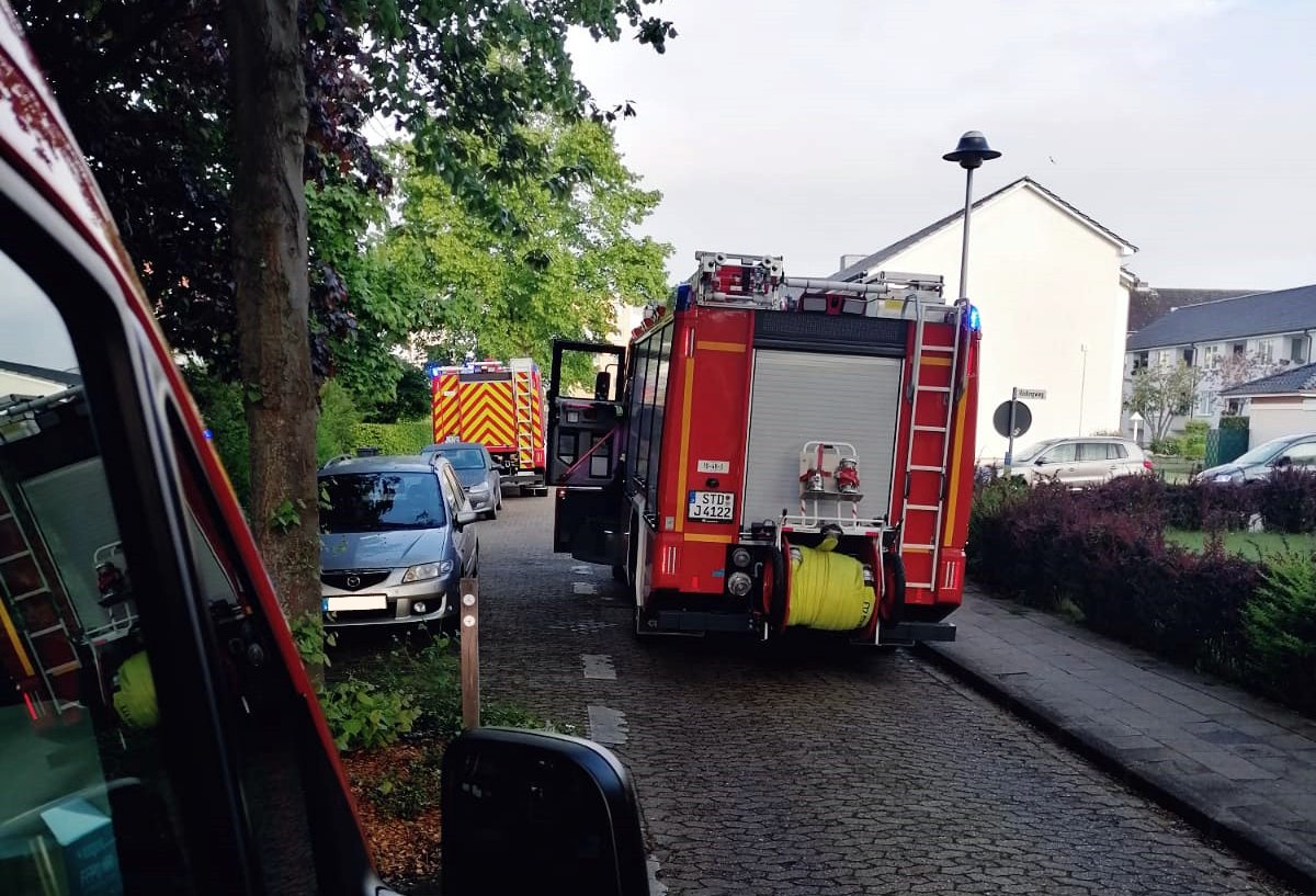 Die zuerst eintreffenden Feuerwehrkräfte vom Zug I der Ortsfeuerwehr Buxtehude konnten ein Ausbreiten auf die gesamte Küche verhindern. Es entstand jedoch erheblicher Schaden durch Ruß und Pulver. Die restlichen Hausbewohner konnten nach einer Stunde wieder in ihre Wohnungen. Der Rettungsdienst brauchte nach einer ersten Sichtung nicht tätig werden. Der ebenfalls alarmierte Zug II und die Unterstützungsgruppe örtliche Einsatzleitung brauchten nicht tätig werden und konnten nach der ersten Erkundungsphase einrücken.