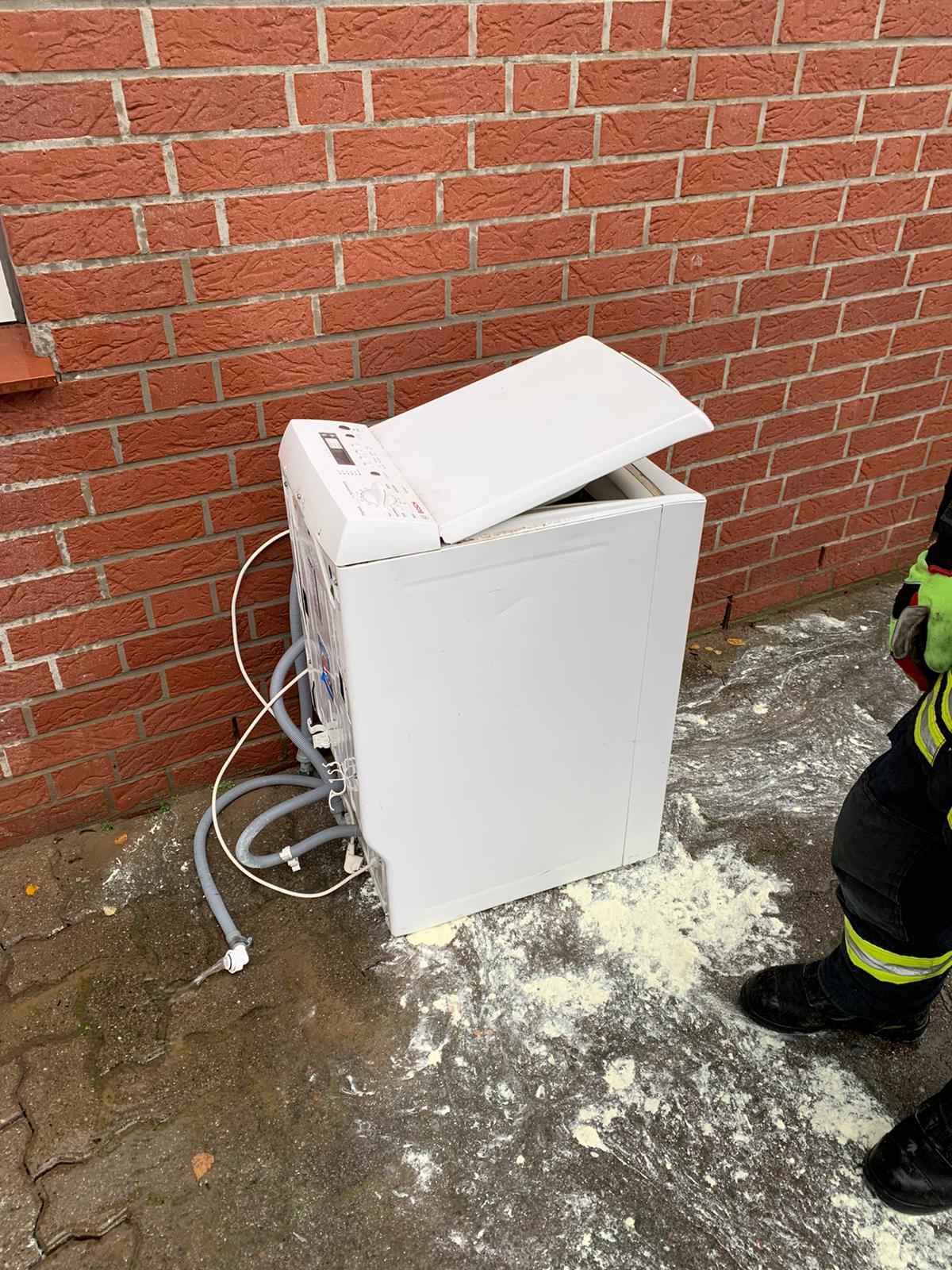 Brennende Waschmaschine im Mehrfamilienhaus