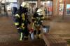 Brennender Mülleimer in der Fußgängerzone