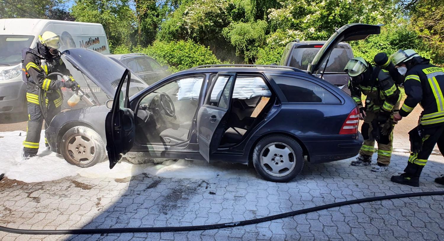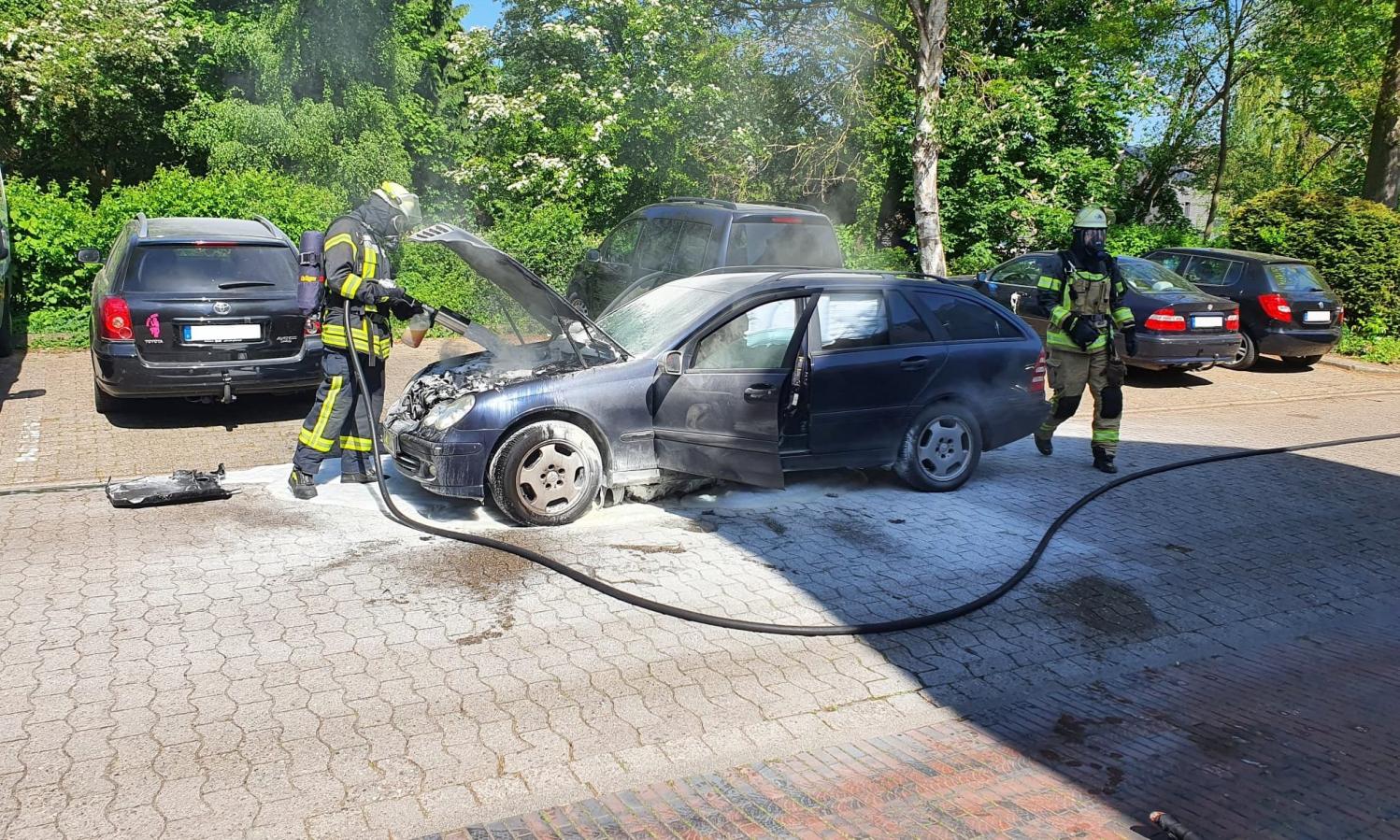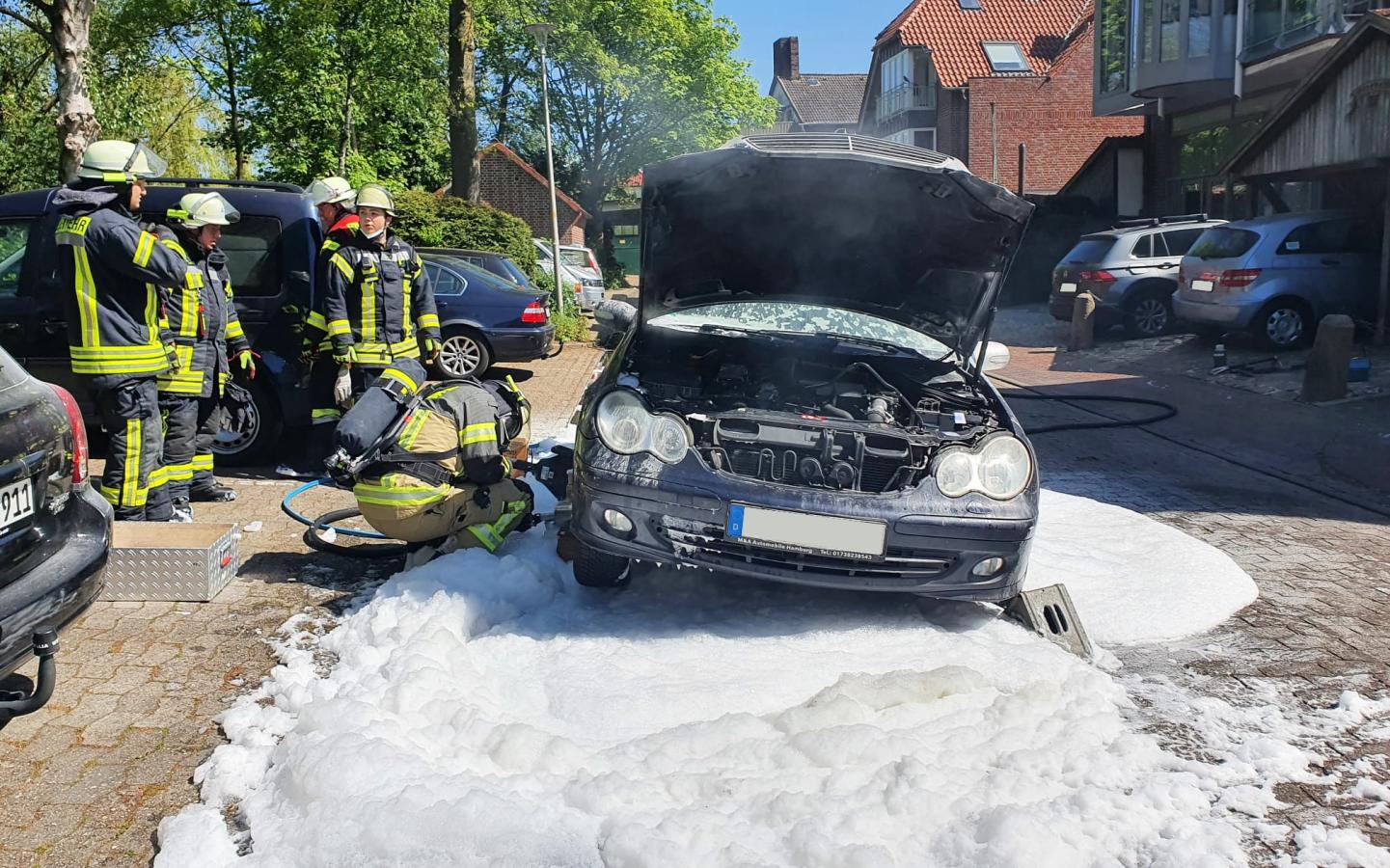 Während der Fahrt fing am Sonntagmorgen ein PKW Feuer. Der Fahrer bemerkte die Flammen im Motorraum seines Fahrzeugs und stoppte den Wagen "Hinter dem Zwinger". Mitarbeiter einer nahen Eisdiele setzten zwei Pulverlöscher ein und konnten das Feuer klein halten. Die alarmierten Einsatzkräfte vom Zug I der Ortsfeuerwehr Buxtehude setzten zum Ablöschen des Motorbrands Löschschaum aus der Schaumpistole ein.