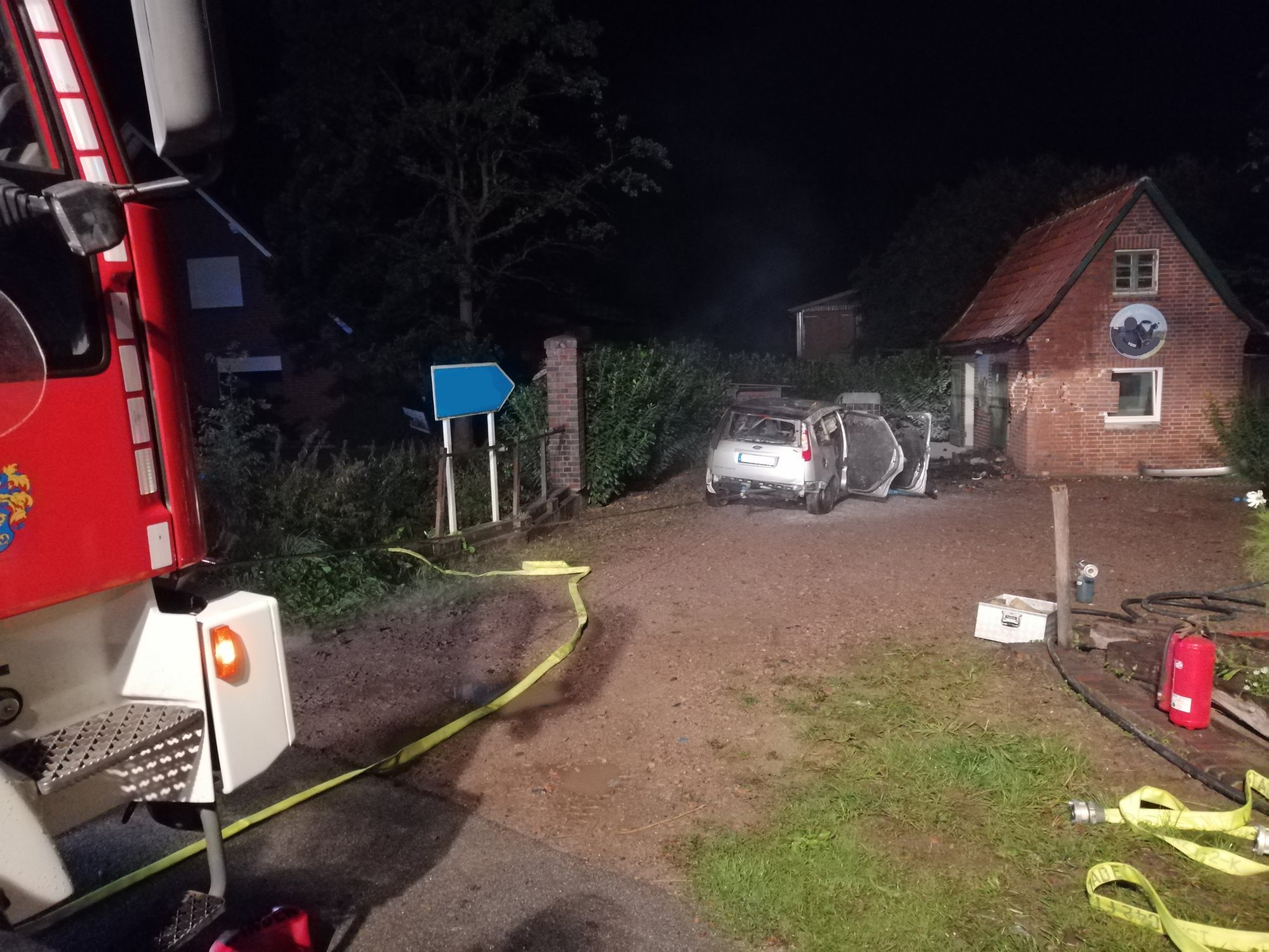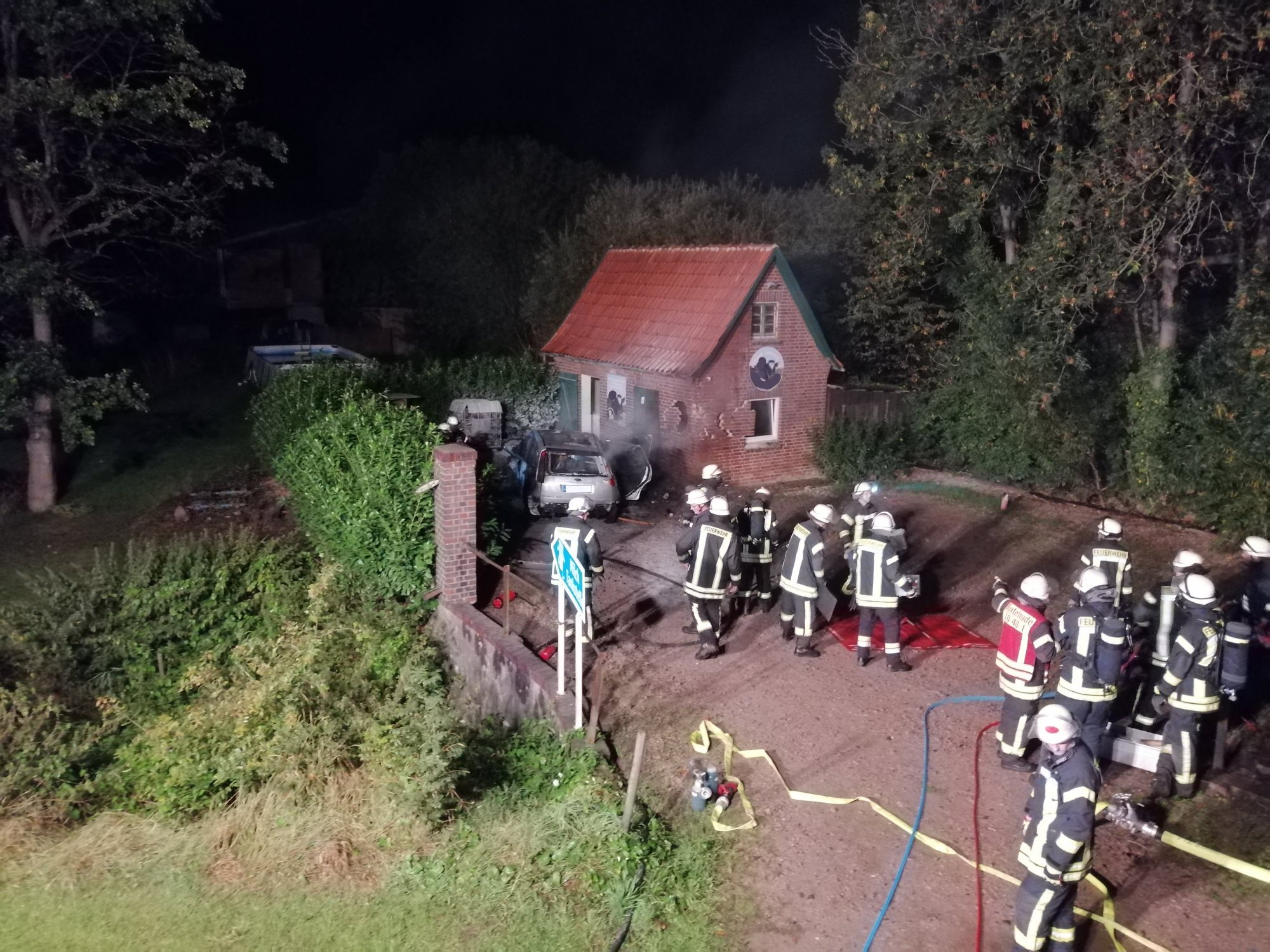 Trotz umgehend eingeleiteter Löschversuche durch vorbildlich agierende Anwohner und die ersteintreffende Polizei, sowie dem bereits fünf Minuten nach Alarmierung eintreffenden ersten Feuerwehrfahrzeugs konnte der Fahrer nicht mehr aus dem Fahrzeug gerettet werden. Der Jorker starb in den Flammen. Den Einsatzkräften vom Zug I und dem hinzu alarmierten Zug II der Ortsfeuerwehr Buxtehude bot sich beim Erreichen der Einsatzstelle ein dramatisches Bild. Der PKW stand in Vollbrand, erste Flammen hatten auf das nebenstehende Gebäude übergegriffen. Da zunächst unklar war, ob eine Rettung der Person im Fahrzeug noch möglich gewesen sein könnte, wurde umgehend ein Schnellangriffsschlauch vorgenommen. Direkt am Wagen war aber sofort klar, dass keine Chance mehr bestand, denn auch der Innenraum war bereits von dem Feuer betroffen. Somit beschränkte sich die erste Maßnahme auf das Ablöschen der Flammen und Glutnester.