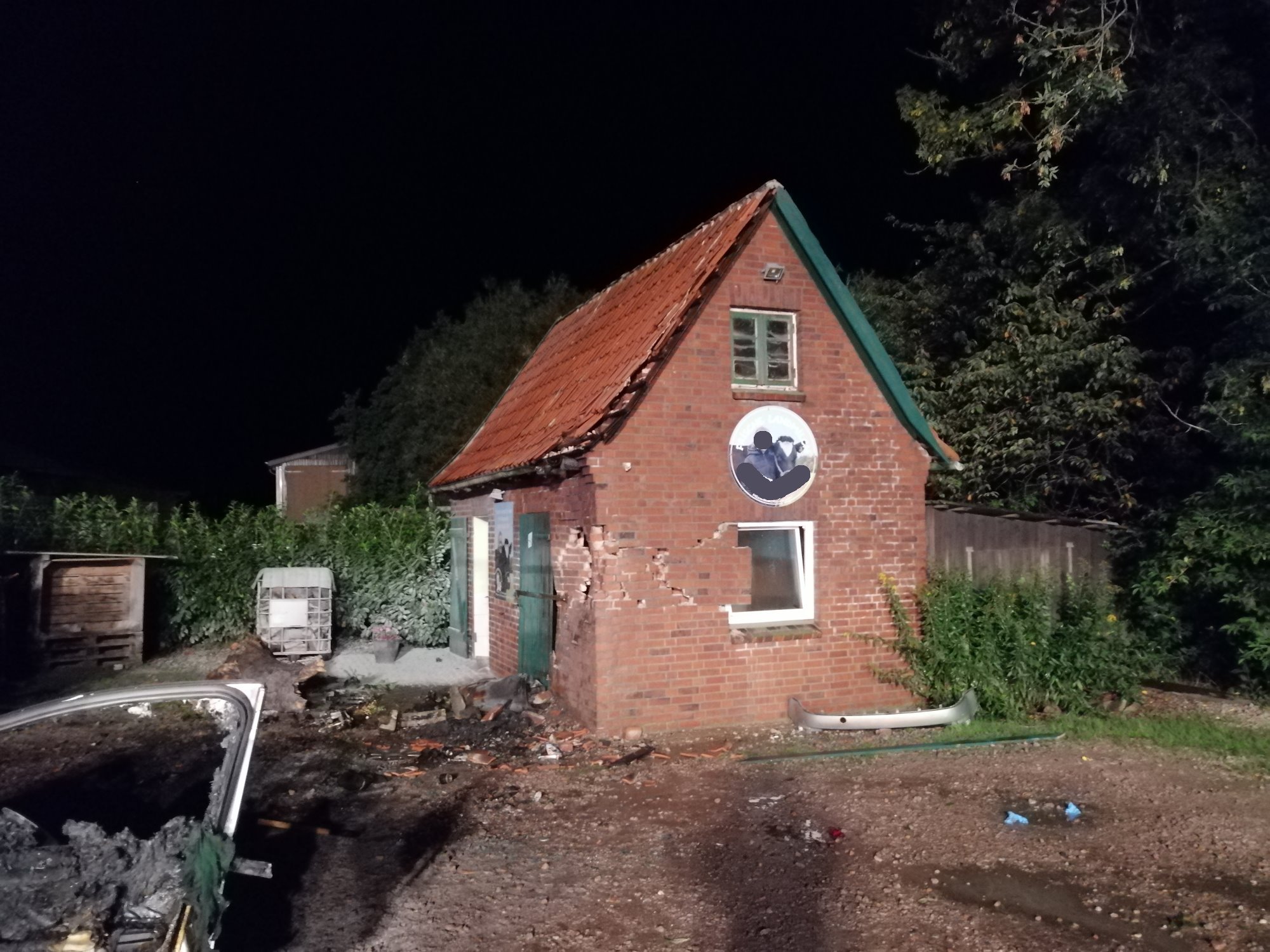 Durch den Einschlag war eine Hausecke komplett eingedrückt worden. Ganze Mauerteile hatten sich um etwa 30cm verschoben. Das Gebäude ist akut einsturzgefährdet.