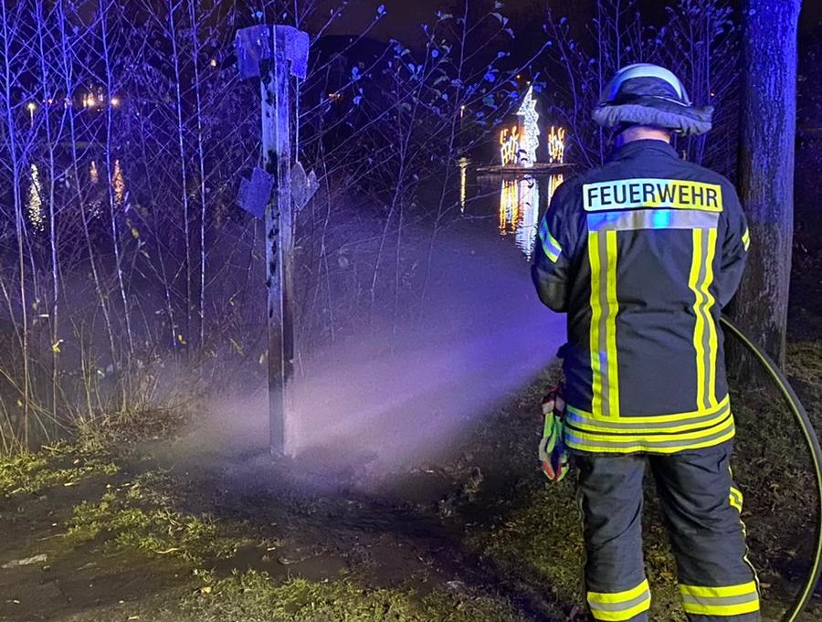 Trotz des schnellen Eingreifens wurden sowohl der Rettungsring, als auch der zugehörigem Kasten durch das Feuer komplett zerstört.