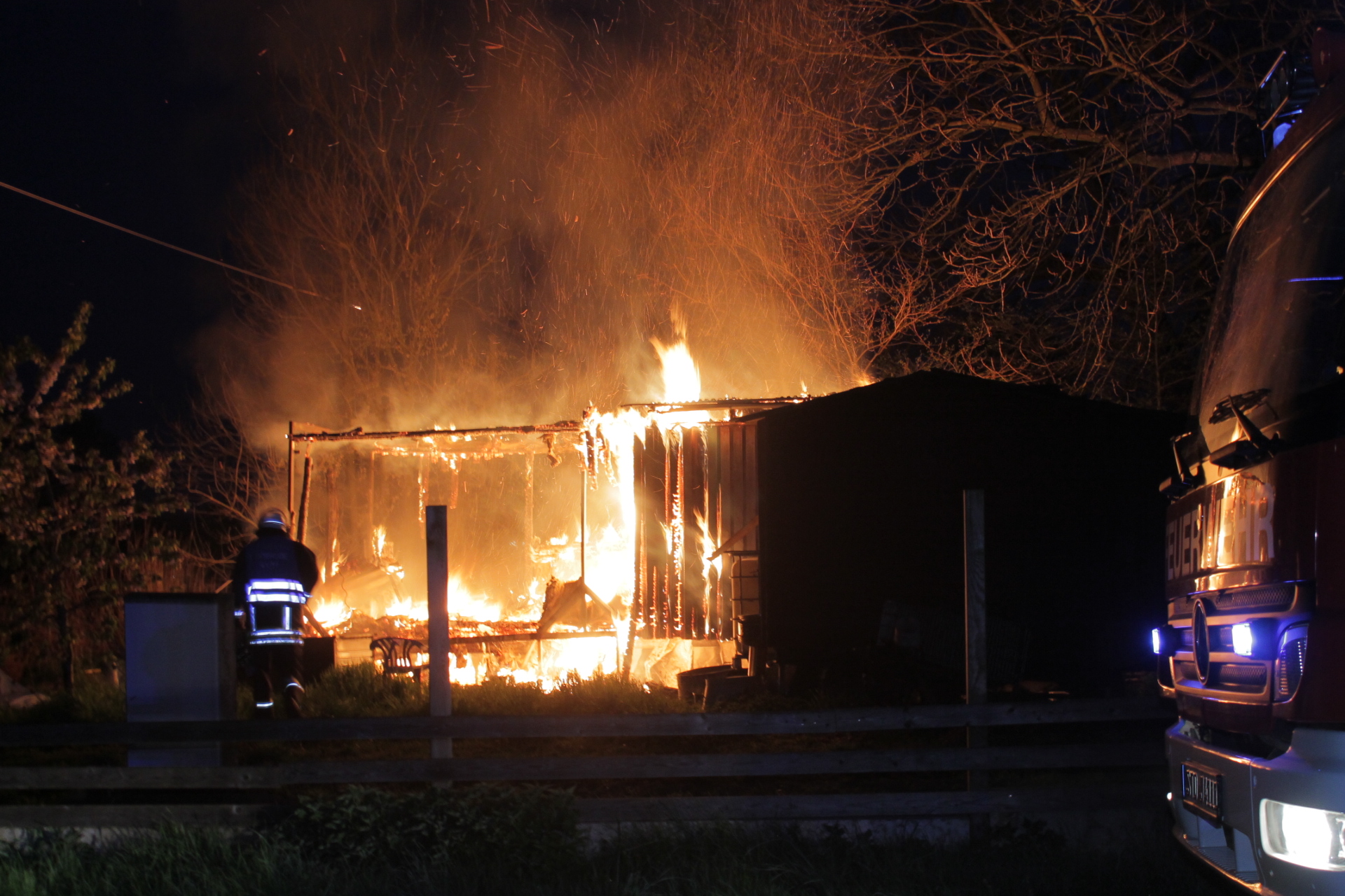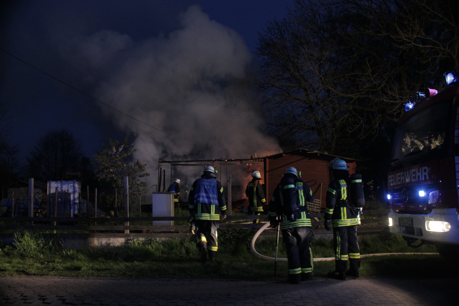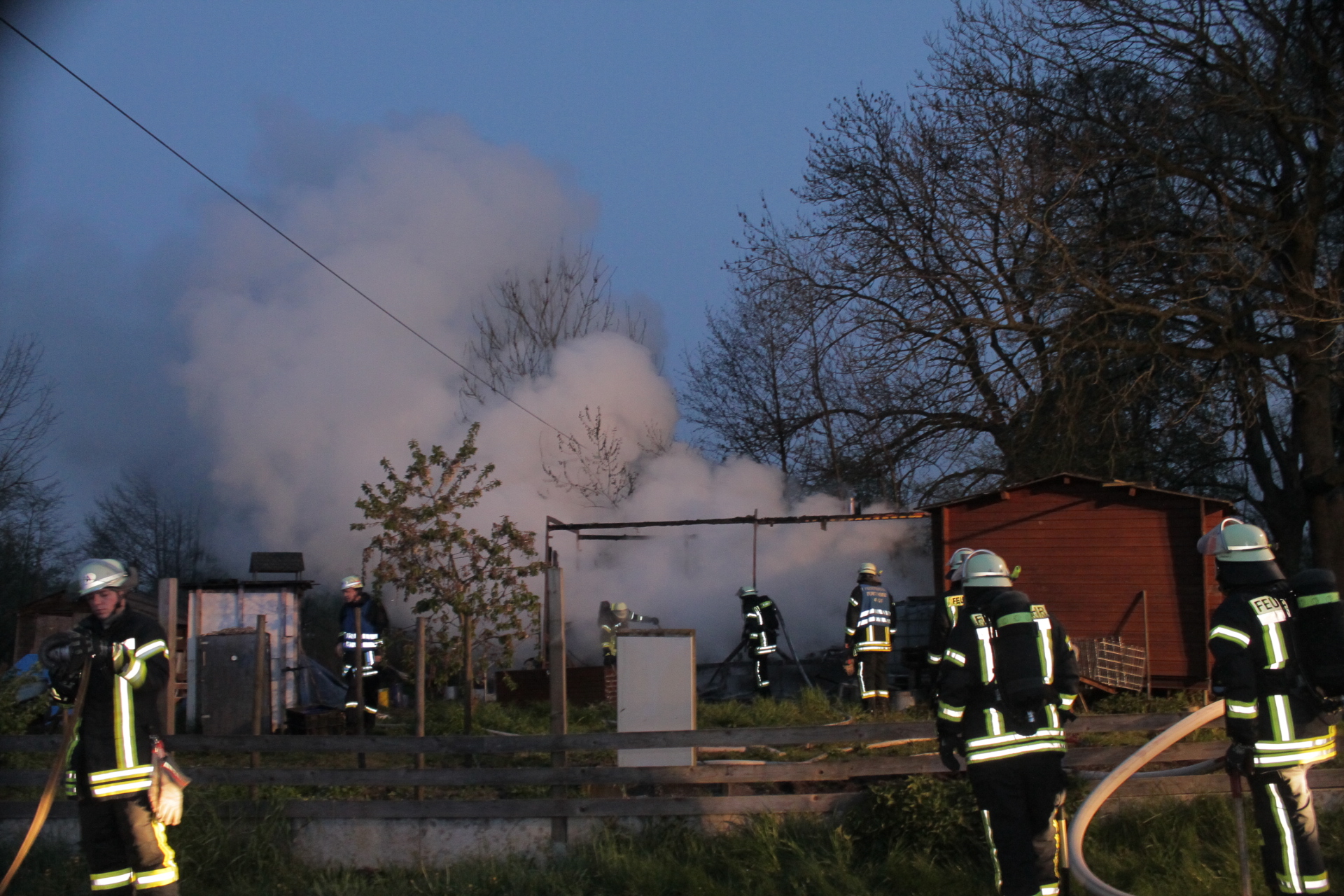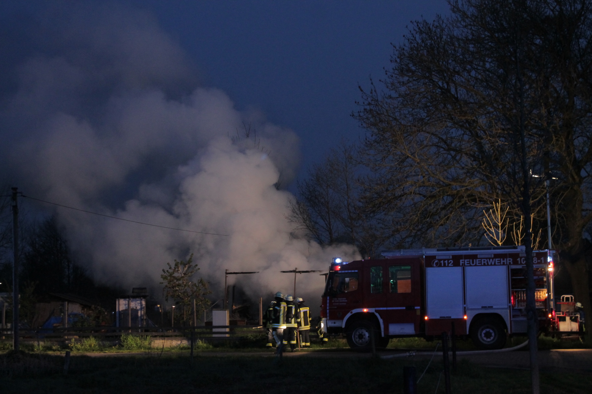 Beim Eintreffen der drei ausgerückten Fahrzeuge an der Einsatzstelle im Moor stand der Bauwagen bereits in Vollbrand. Mit einem C-Rohr und insgesamt drei Atemschutztrupps konnte das Feuer unter Kontrolle gebracht und wenig später gelöscht werden. Während der Löscharbeiten wurden zwei Gasflaschen aus dem Gefahrenbereich geräumt und in Sicherheit gebracht. Nach Ende der Löscharbeiten wurde die Schadensstelle für weitere Ermittlungen an die Polizei übergeben.