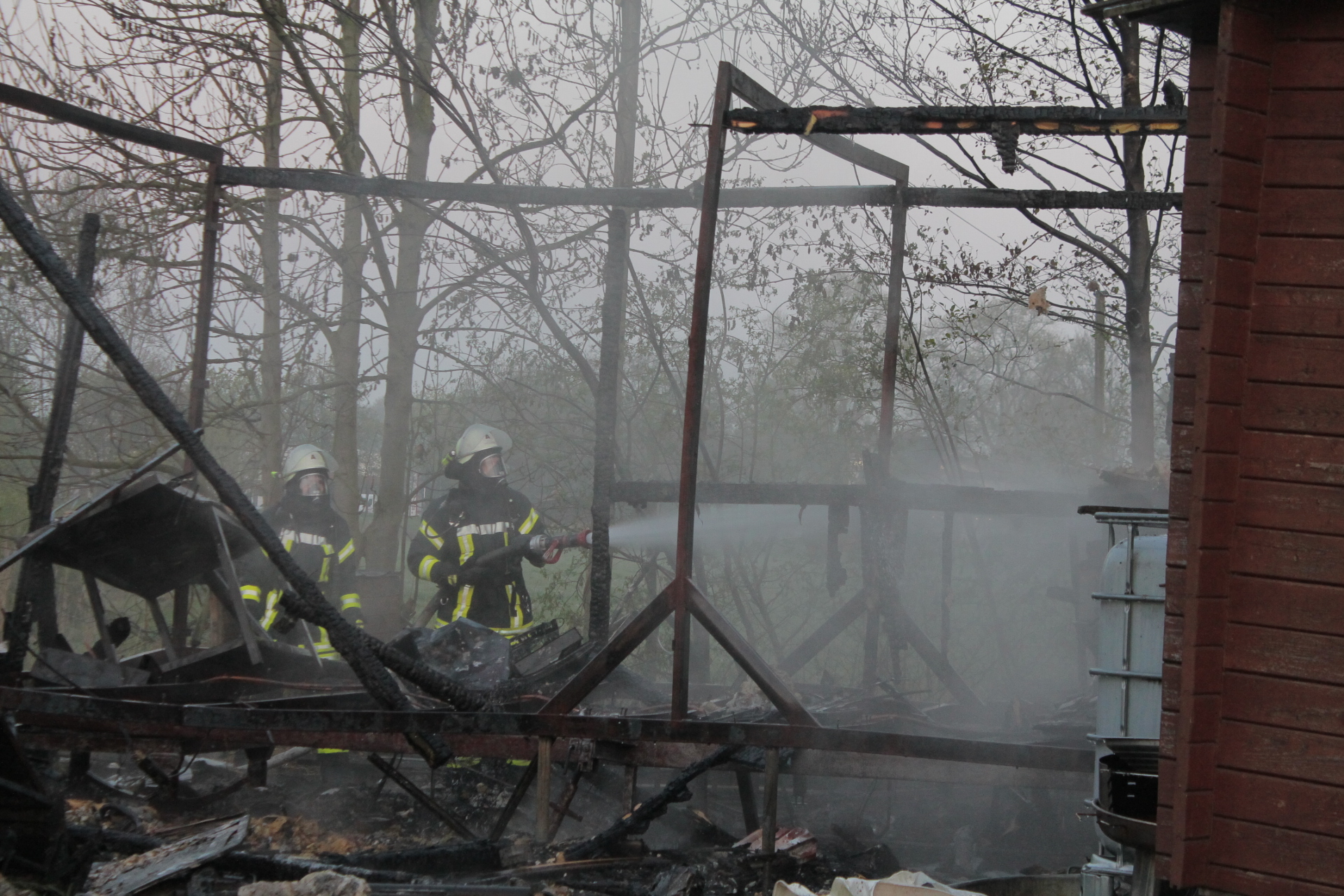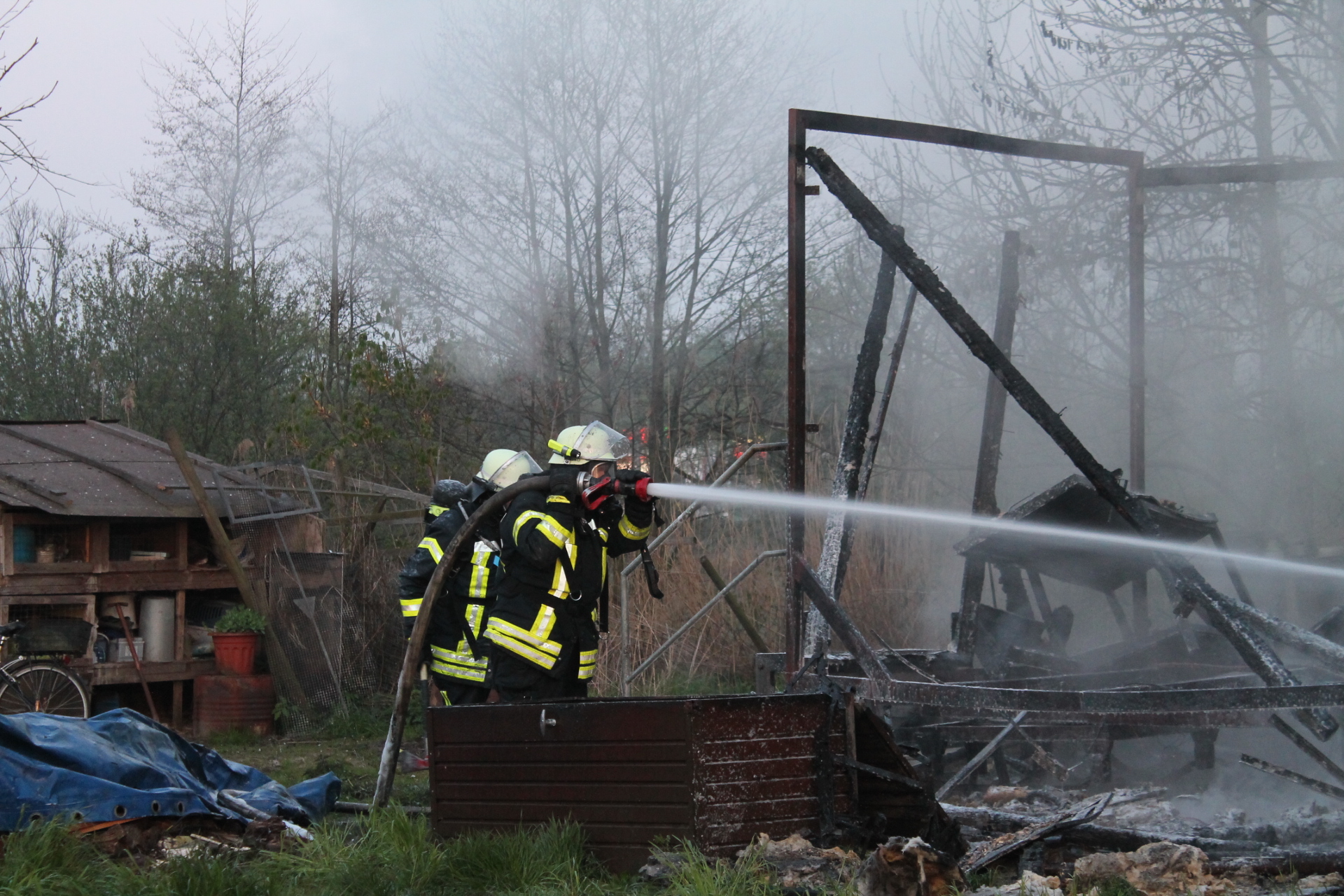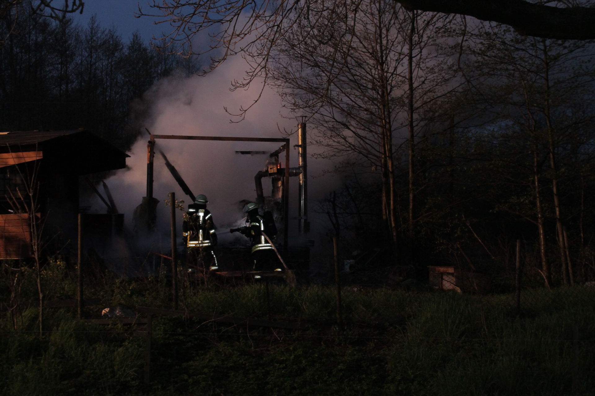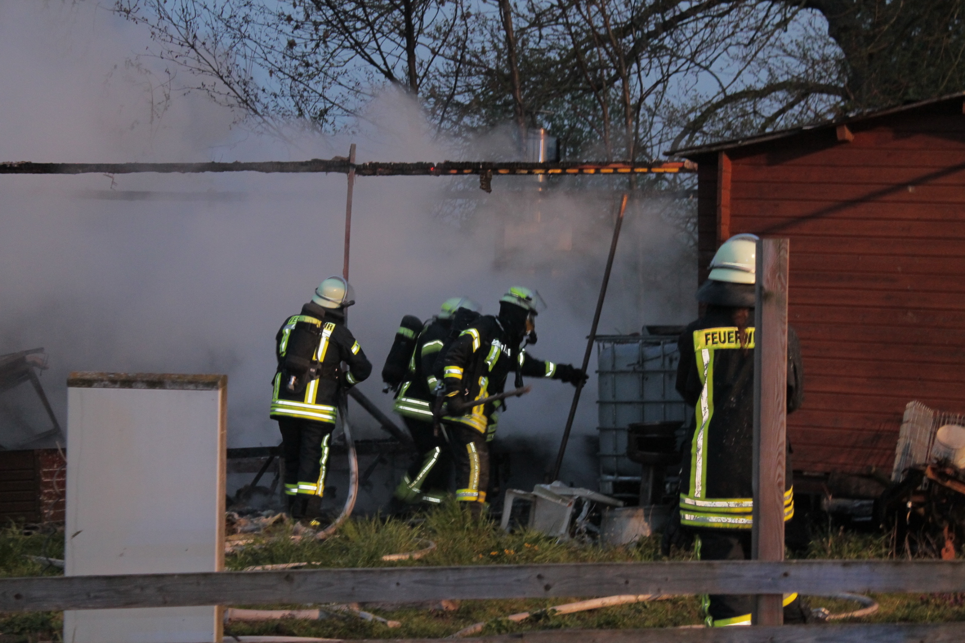 Beim Eintreffen der drei ausgerückten Fahrzeuge an der Einsatzstelle im Moor stand der Bauwagen bereits in Vollbrand. Mit einem C-Rohr und insgesamt drei Atemschutztrupps konnte das Feuer unter Kontrolle gebracht und wenig später gelöscht werden. Während der Löscharbeiten wurden zwei Gasflaschen aus dem Gefahrenbereich geräumt und in Sicherheit gebracht. Nach Ende der Löscharbeiten wurde die Schadensstelle für weitere Ermittlungen an die Polizei übergeben.