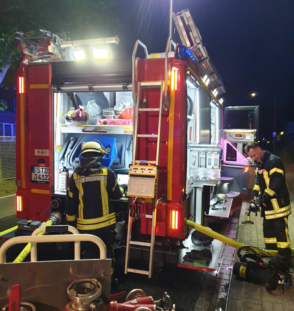 Am Sonntagabend wurden beide Züge der Ortsfeuerwehr Buxtehude sowie die Unterstützungsgruppe örtliche Einsatzleitung in den Alten Postweg gerufen. Ein Schuppen sollte brennen und dicht an einem weiteren Gebäude stehen.