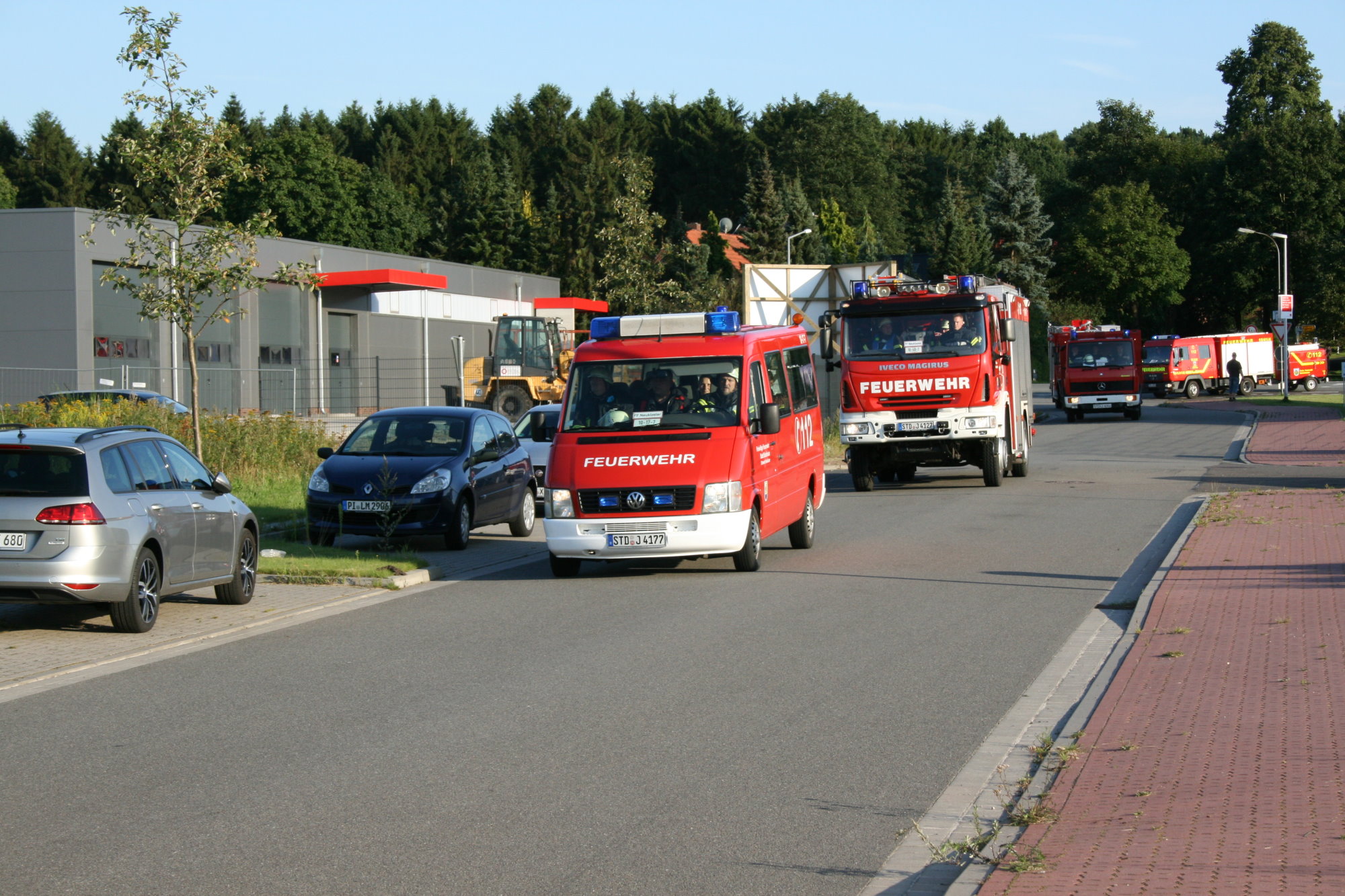 Um Punkt 18.46 Uhr heulten am Montag stadtweit die Sirenen. Alle vier Züge der Feuerwehr der Hansestadt Buxtehude rückten aus – mit rund 120 Einsatzkräften. Das Technische Hilfswerk unterstützte sie.