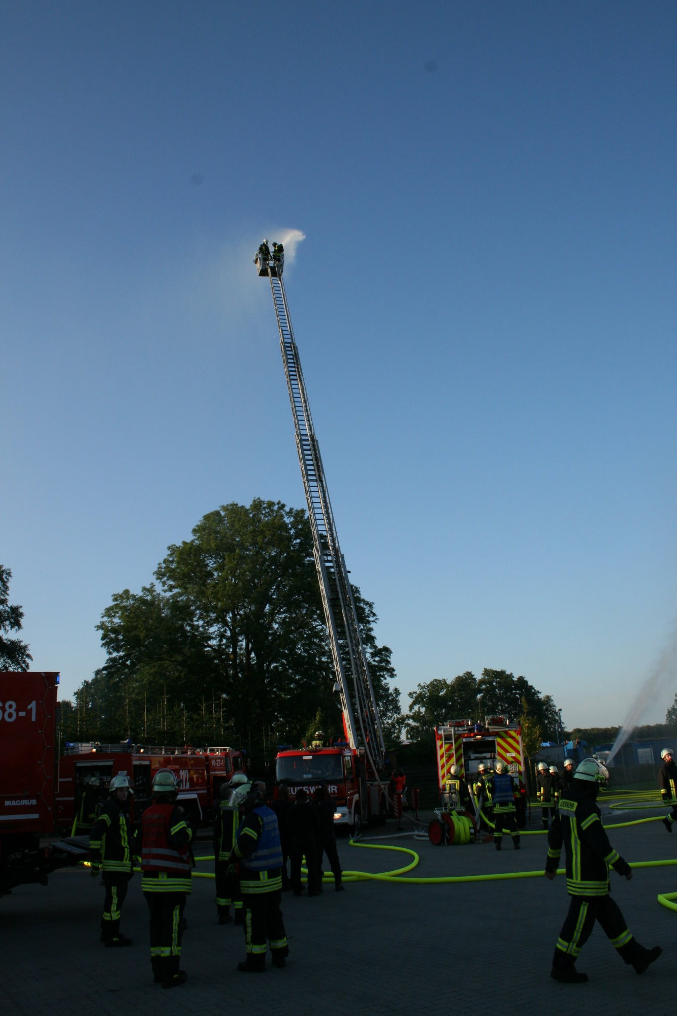 Rund 120 Buxtehuder Feuerwehrleute haben am Montagabend im Gewerbegebiet Ovelgönne den Ernstfall geprobt – mit einer öffentlichen Alarmübung bei EP Logistic an der B 73. Viele Bürger waren dem Aufruf von Stadtbrandmeister Horst Meyer gefolgt.