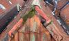 Aus der Drehleiter kontrollierten die anrückenden Einsatzkräfte die umliegenden Gebäude und konnten an einem Wohn-und Geschäftshaus die Ursache finden. Zwei Firstpfannen fehlten bereits und eine weitere drohte bei nächster Gelegenheit herabzufallen. Der Feuerwehrmann im Drehleiterkorb entfernte die Gefahr.