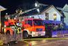 Insgesamt sieben Atemschutztrupps wurden im ersten Angriff eingesetzt. Dazu Rettungssägen und diverse Brechwerkzeuge. Zu Spitzenzeiten waren drei C- und ein D-Rohr im Einsatz. Die Drehleitern gingen auf beiden Hausseiten in Stellung. Leider wurden die Kinderzimmer im Dachgeschoss des betroffenen Hauses erheblich in Mitleidenschaft gezogen. Neben den Brandschäden kam es einsatzbedingt auch zu einem massiven Wasserschaden.