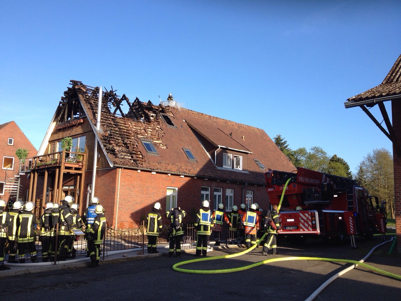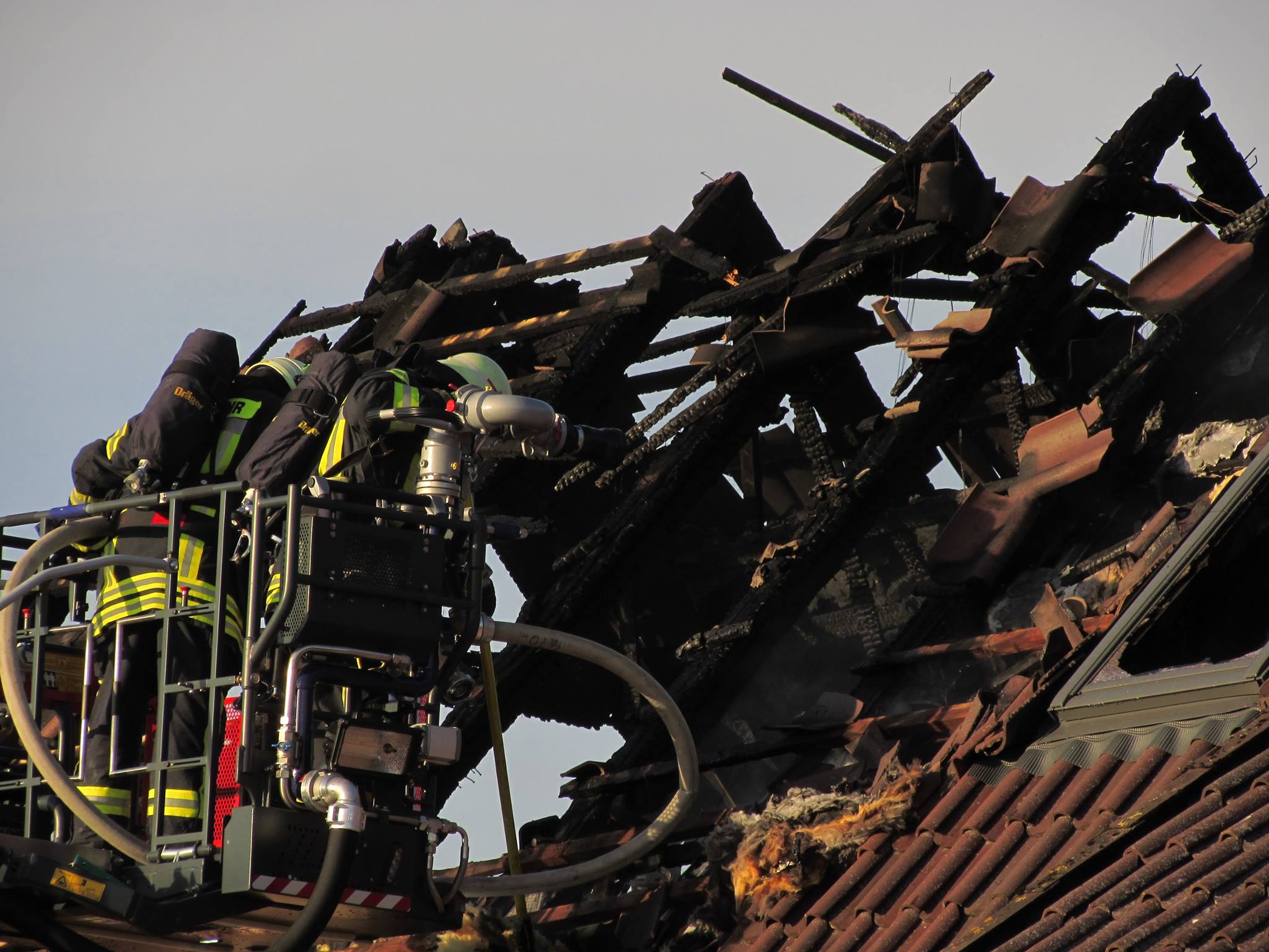 Das Feuer war im hinteren Bereich des Hauses ausgebrochen und drohte nun über den Dachstuhl zur Straßenseite zu wandern. Nach Eintreffen der Buxtehuder Einsatzkräfte wurde die Drehleiter an der Straße aufgestellt und die östliche Dachseite aufgenommen und abgelöscht. Durch die Neu Wulmstorfer Drehleiter wurde indes die westliche Dachseite bearbeitet.