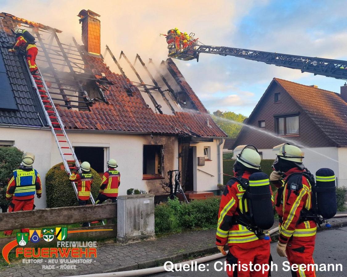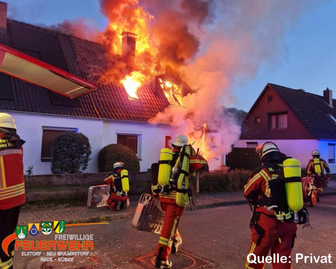 Doppelhaushälfte im Vollbrand - Großfeuer in Neu Wulmstorf