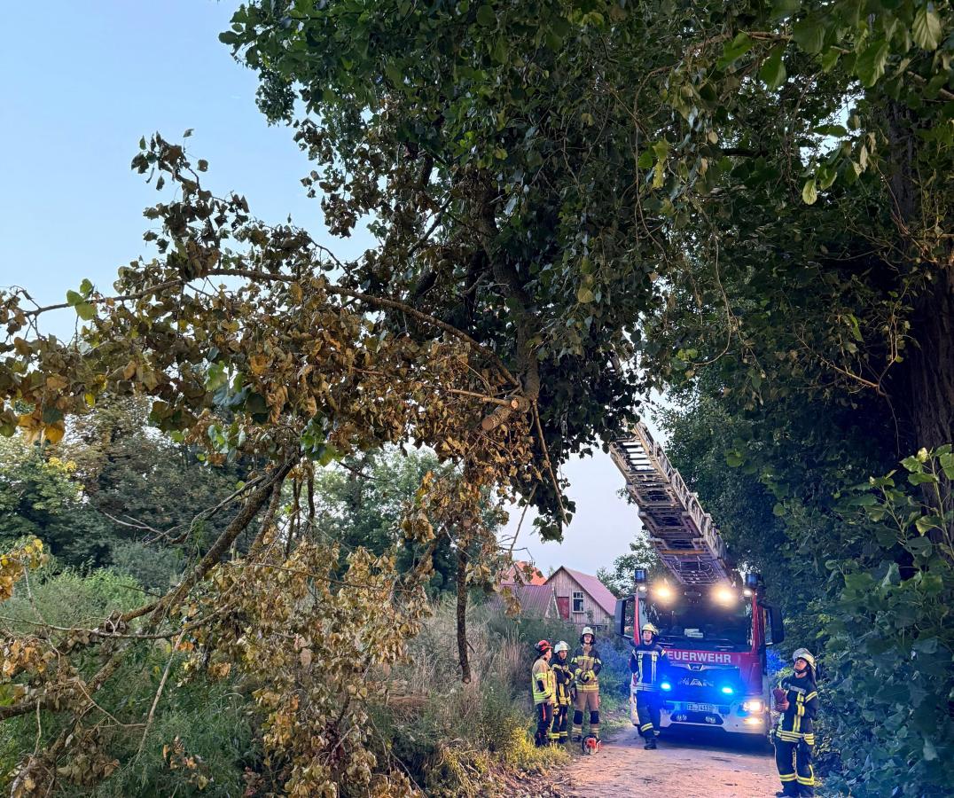 Ein etwa 30 Zentimeter dicker Ast drohte am Mittwochabend in ungefähr sechs Metern Höhe aus einer Baumkrone zu brechen.