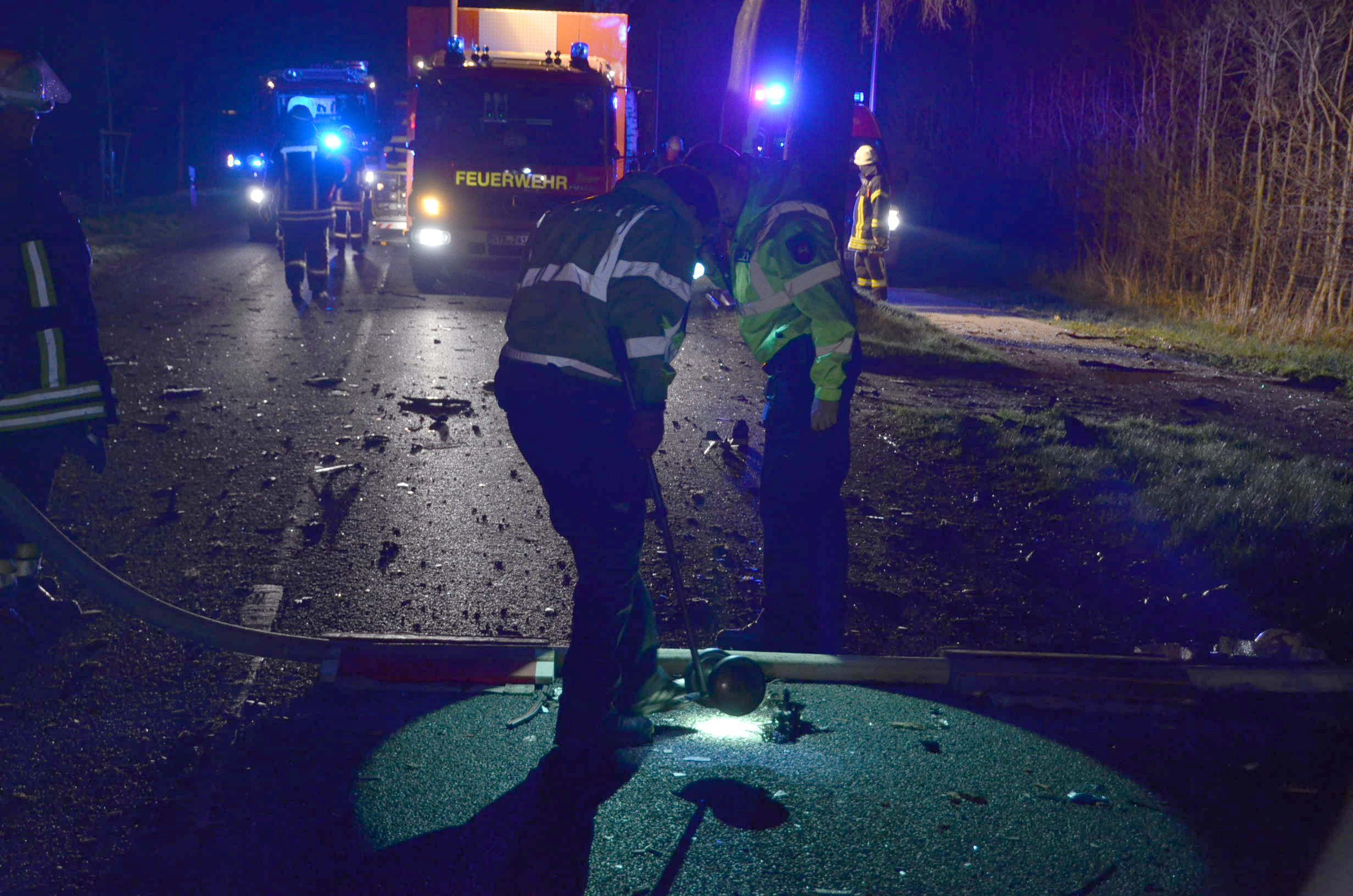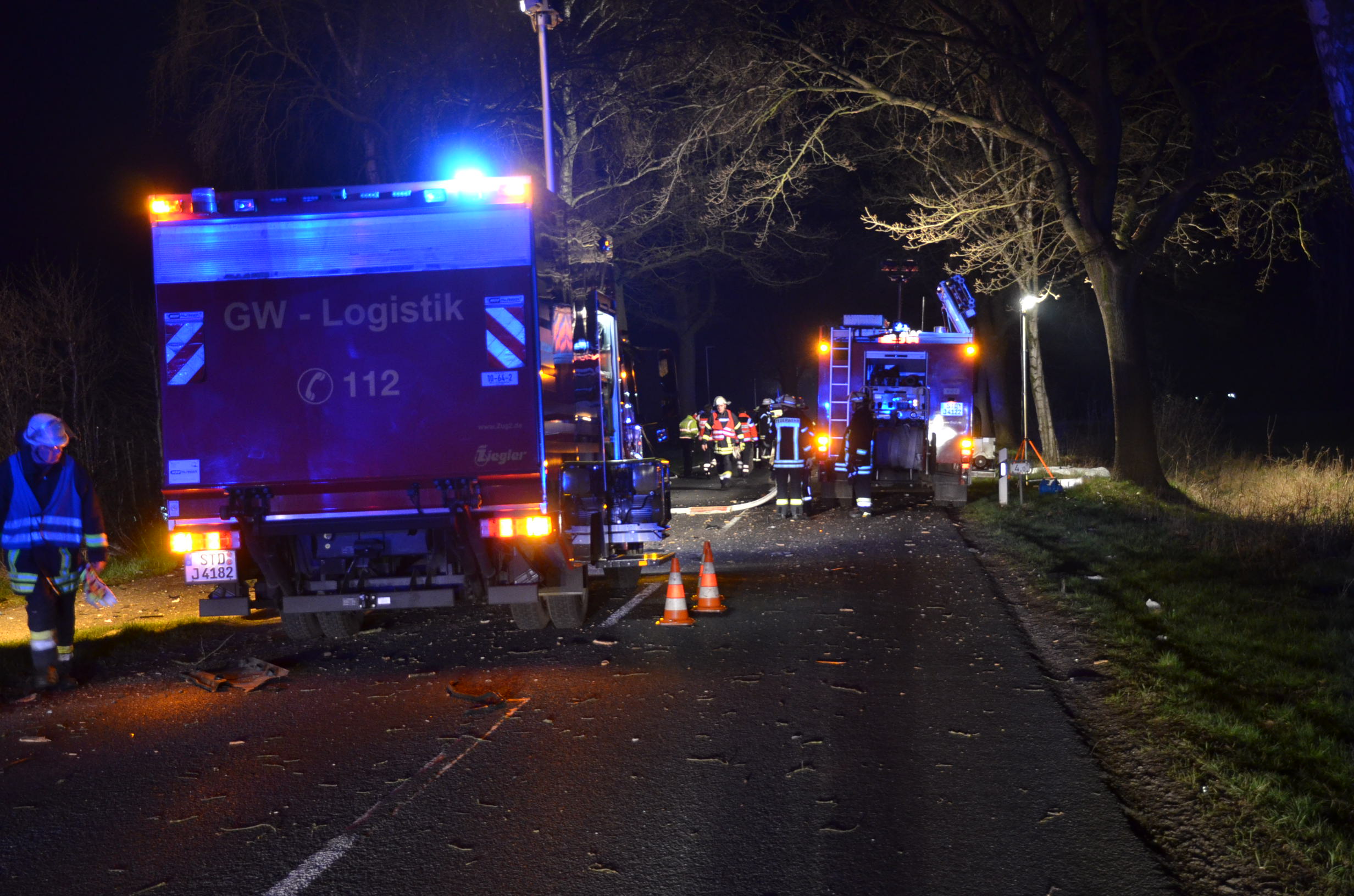 Der alarmierte Zug II der Ortsfeuerwehr Buxtehude half bei der Ausleuchtung der Einsatzstelle und den Aufräum- und Bergungsarbeiten.