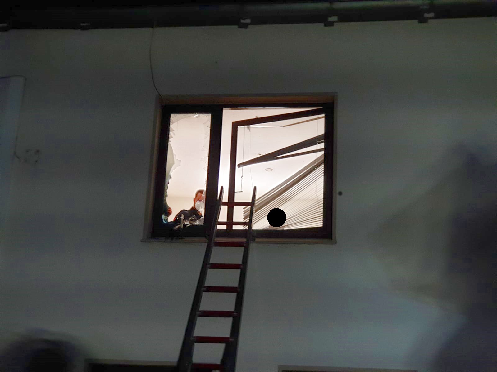 Vor Ort bot sich den Einsatzkräften ein Bild der Zerstörung. Auslöser dafür waren vermutlich Arbeiten mit Epoxidharz, wobei es zu einem stärkeren Behälter-Zerknall kam. Die Druckwelle war so stark das auf der Rückseite des Gebäudes ein Fenster geborsten war. Bis zu 20 Meter weit entfernt lagen Scherben und weitere „Trümmerteile“. In der betroffenen Wohnung wurde sogar die Tür zum Wohnzimmer aus der Zarge gerissen und lag im Flur.