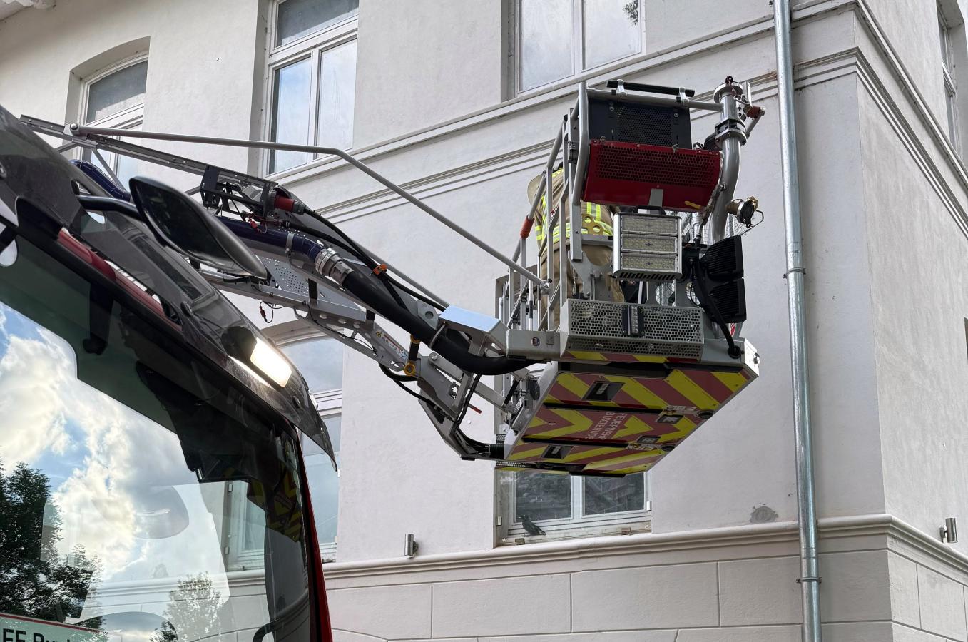 Die Feuerwehrkräfte setzten kurzerhand die Drehleiter ein, um das betroffene Fenster im Hochparterre erreichen zu können. Mit einem Kescher konnte der Vogel eingefangen und schließlich in die Freiheit entlassen werden.