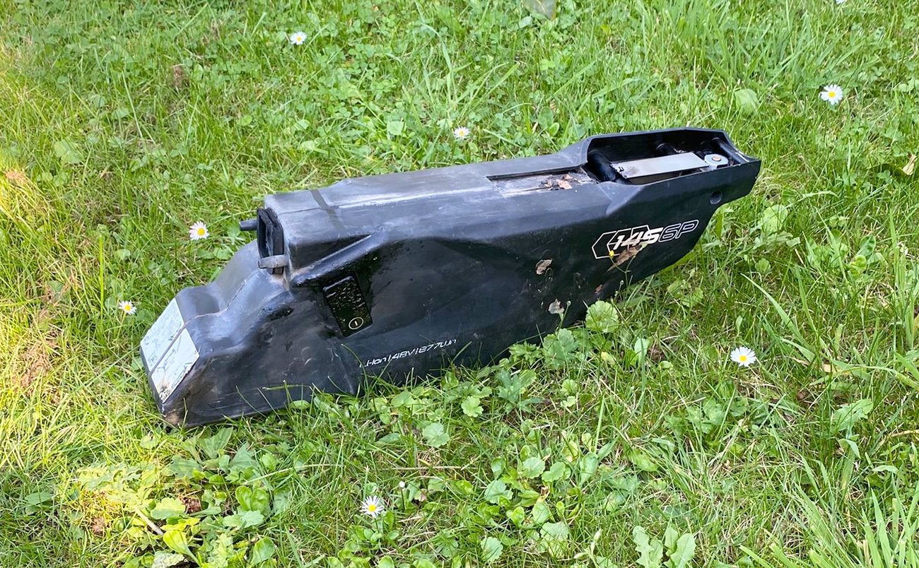 Beim Eintreffen der Einsatzkräfte hatte sich der Akku bei der Kontrolle mit der Wärmebildkamera bereits wieder auf etwa 35°C abgekühlt. Der Brandgeruch war noch wahrnehmbar, auch waren Brandspuren an der Batterie zu erkennen. Um einen möglichen Selbstentzündung der beschädigten Lithiumzellen entgegen zu wirken, wurde der Akku zur weiteren Kühlung in einen Behälter mit Wasser gelegt.
