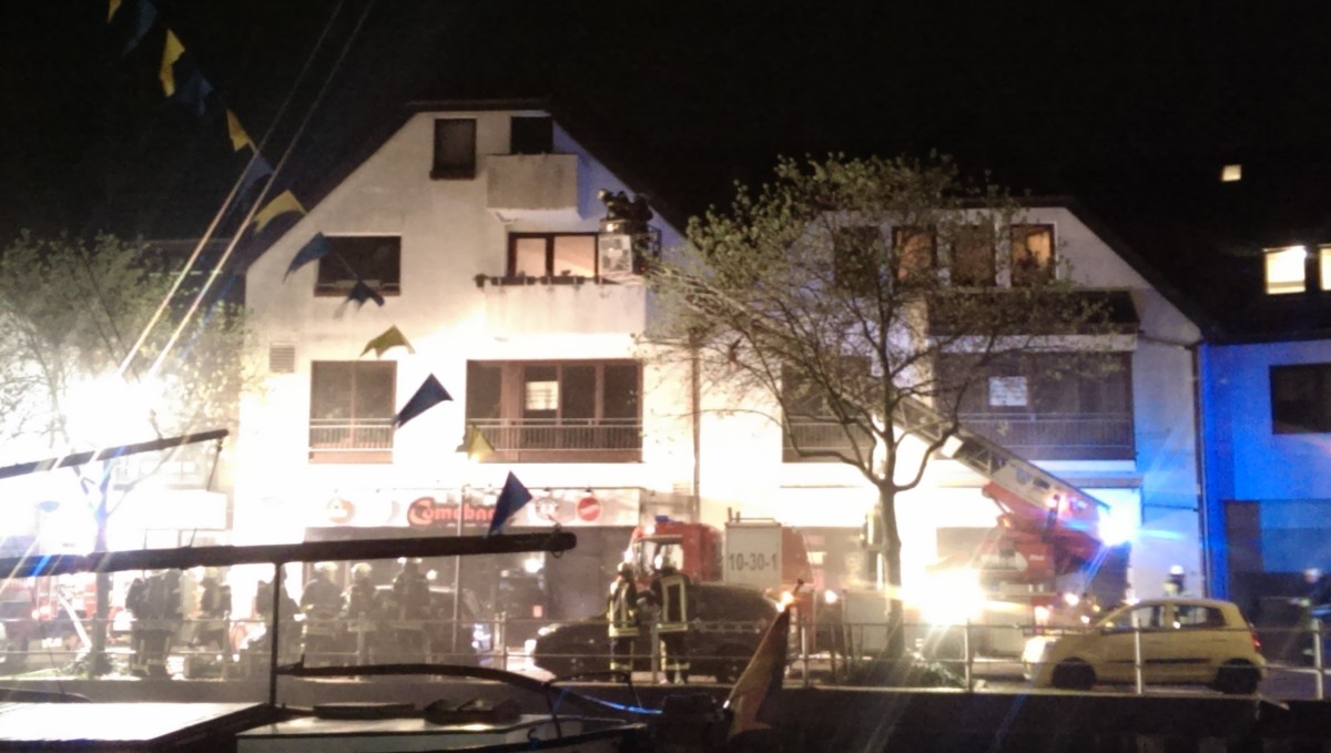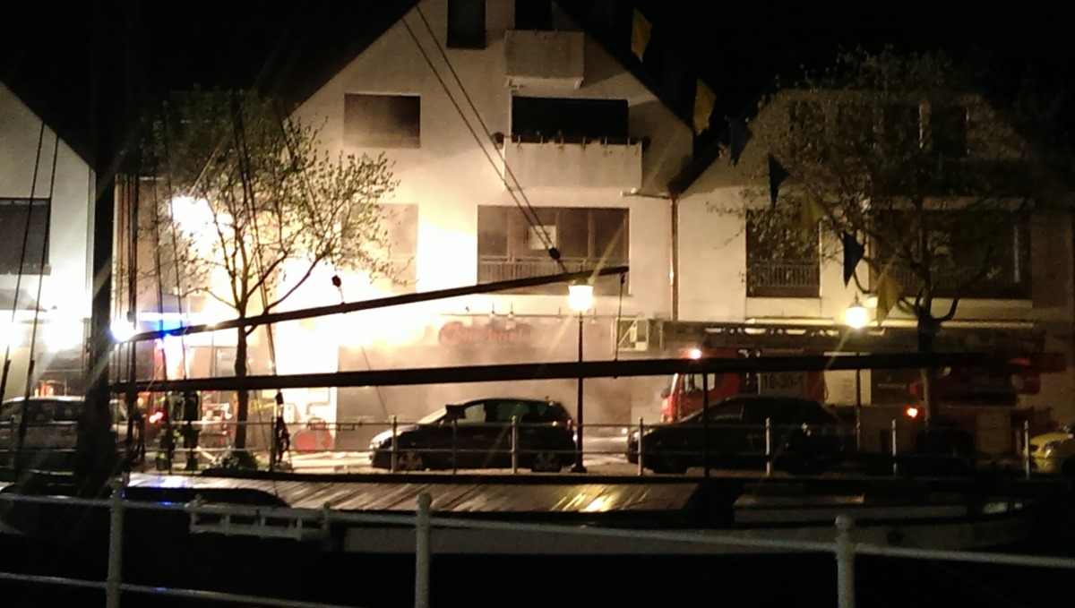 Beim Eintreffen an der Einsatzstelle quoll dichter Rauch aus der Fassade der Kneipe. Glücklicherweise blieben die Wohnungen und Flure oberhalb des Geschäftes von Rauch und Flammen verschont, so dass hier auf eine Evakuierung verzichtet werden konnte.