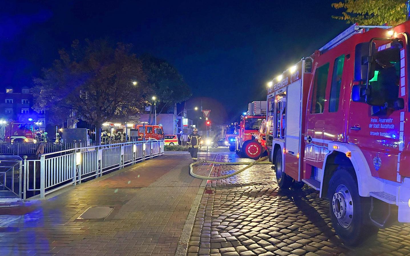 Da im Brandraum elektrische Leitungen geschmolzen waren, wurden noch die Stadtwerke Buxtehude an die Einsatzstelle angefordert.